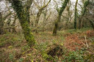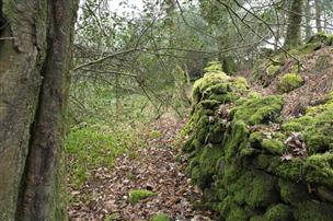 Off the vehicular track there is a short brush-cut pathway to lead you into the lower woodland. Here you'll find some of the ancient walls.
