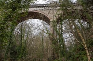 The woodland is in the grounds of the former Abergele chest hospital, now the eye hospital. The bridge is a hidden gem and steeped in history. A contract was awarded to S F Hopley of Prestatyn for the sum of £12,822 in 1925. 'The completed bridge spanned 315 feet in length rising to 96 feet in height above Gele stream. The bridge was named by the resident children as “The Echo Bridge”.