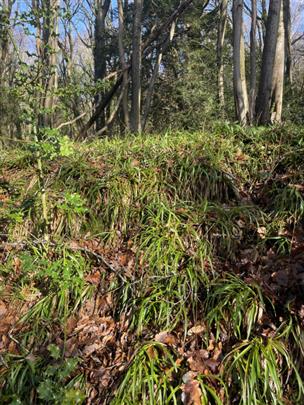 Towards the southern end of the woodland a shallow gorge splits the woodland with small group of conifer established on either side.