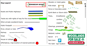 The woodland sits on a west facing slope, although the land undulates throughout, with level areas and none of the land is unduly steep. A public footpath bisects the larger woodland north to south, and serves as Hornbeam Wood's eastern boundary line, and an old track, now a restricted byway for pedestrian use only, runs along the western boundary.
