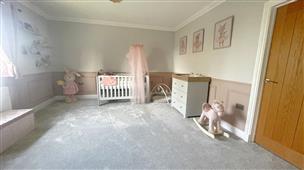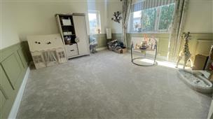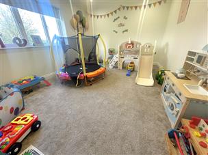 A versatile room ideal for use as a playroom or additional reception space. Carpet flooring, coved ceiling and window to the rear.
