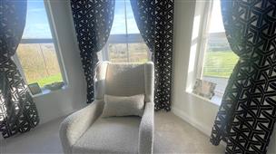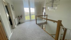 Large landing area with glass balustrade continuing from staircase. Balcony opening out to front, displaying the breathtaking countryside views. Loft Access and Doors to