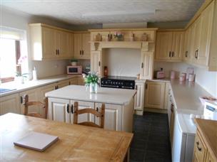Approx. 12' 4" x 20' 0" (3.76m x 6.10m) Fitted base and wall units. Rangemaster cooker/hob. Extractor fan. Single drainer sink unit. Central island. Space for integral fridge and freezer