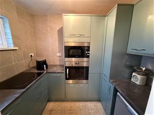 Fitted shelving and cupboard. Hob and seperate Zanussi Oven (not tested)