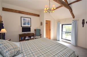 Carpet, exposed timbers, radiator and window. Walk in wardrobe with radiator.