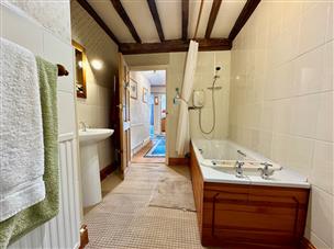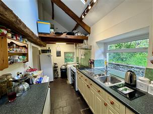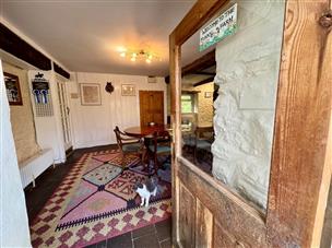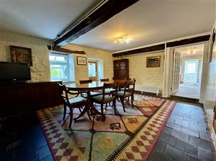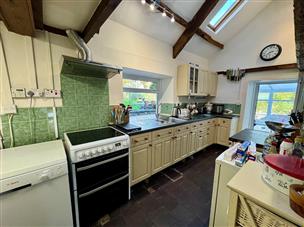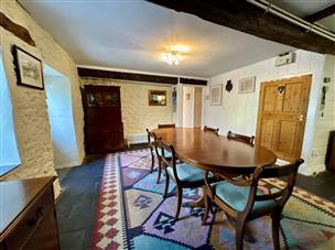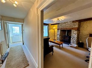The property offers flexible living accommodation, providing ample space for modern family life while preserving its historic charm. Internally, the front entrance porch leads into a welcoming entrance hall, with doors opening to two front reception rooms, both featuring log-burning stoves. The staircase leads to the first floor, while a door provides access to the dining room, also with a log-burning stove and a former bread oven. From here, a door leads to the rear boot room/utility area and onward to the kitchen/breakfast room, which is fitted with a range of base and wall units. A further conservatory extends from the kitchen, offering views over the garden and surrounding land.