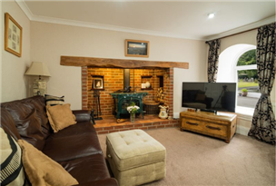 Grand Living Room – A showstopping inglenook fireplace with concealed lighting and a large wood burner