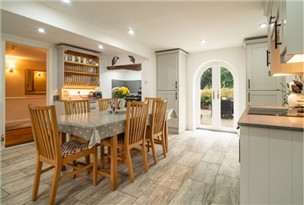 Utility & Garden Room – Seamless indoor-outdoor flow with ceramic tiled floors and glazed doors to the patio