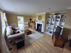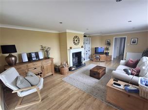 22' 3" x 13' 3" (6.78m x 4.04m). With a large picture window enjoying great views over the land and the countryside beyond, open fireplace housing a cast iron multi fuel stove, two radiators, spot lighting and laminate flooring.