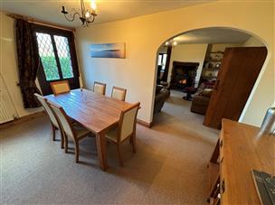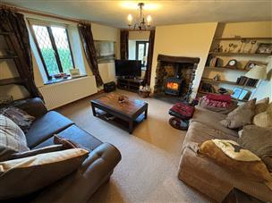 14' 0" x 13' 10" (4.27m x 4.22m). With a feature stone fireplace with Oak beam over incorporating a 'Clear View' wood burning stove, leaded window to the front and side, radiator, archway leading to Dining Room.