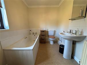 A comfortable suite comprising of a panelled bath with shower, low level flush w.c., pedestal wash hand basin and radiator.