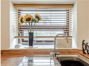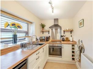8' 0" x 6' 0" (2.44m x 1.83m). A fully refurbished modern Shaker style fitted kitchen with fitted units, electric fan oven, 4 ring ceramic hob with extractor hood over, single sink and drainer unit.