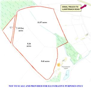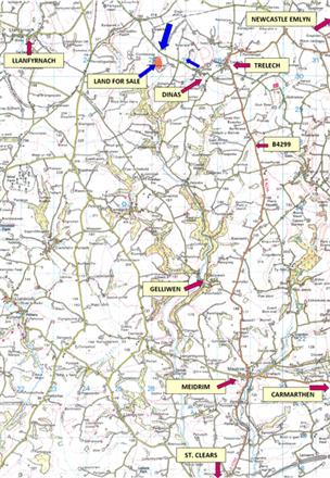 25.70 ACRES or thereabouts of level to sloping pastureland situated set back off the Council maintained road being approached via a hardcored/concreted farm lane onto which the land enjoys excellent road frontage being in 5 enclosures enjoying a sunny southerly aspect within 1 mile of the hamlet of Dinas, is within 2 miles of the rural village community of Trelech and the B4299 'Meidrim to Maudsland' Road, is within 4.5 miles of the rural village of Llanfyrnach, is within 8 miles of Meidrim, is located some 12.5 miles north of the Market town of Whitland and A40 trunk road, is within 13.5 miles of the town of St. Clears and the land is located some 16 miles north west of the County and Market town of Carmarthen