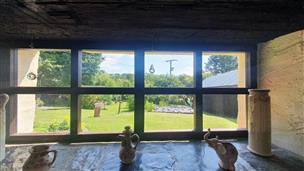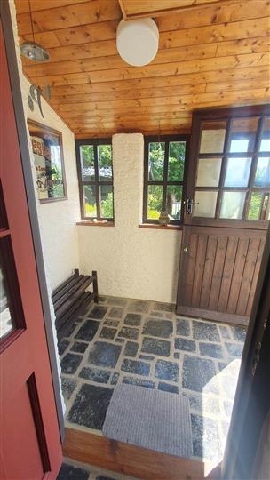 on two levels with cobbled floor and barn door to front. Formerly a cowshed.