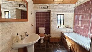 A solid stone cottage with slate floors to the ground floor, exposed stone walls and beams.