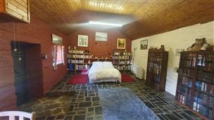 a huge room that could be divided into two rooms if required as it has two windows with front door. fitted shelving, nook details, tongue and groove pine ceiling. Striplight.