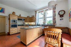 On entering the property, a welcoming entrance hallway sets the tone for the elegant accommodation that follows. Immediately to the left is a well-proportioned study with a front-facing window and a period fireplace, providing an ideal space for working from home. The principal reception rooms — the drawing room and dining room — are both positioned to take full advantage of the beautiful valley views. Each features an attractive period fireplace, while the drawing room is further enhanced by a striking bay window that floods the space with natural light. The kitchen is well appointed, fitted with a good range of cupboards and drawers beneath granite worksurfaces, an electric cooker, and an oil-fired AGA. A door provides direct access to the outside, making it both practical and welcoming as the heart of the home. Across the ground floor are a number of additional ancillary rooms, including useful utility and wash areas, along with a workshop offering excellent flexibility for storage or hobbies.