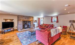 With inglenook fireplace, flagstone hearth and Clearview stove. Doors and windows to the front and rear elevations.