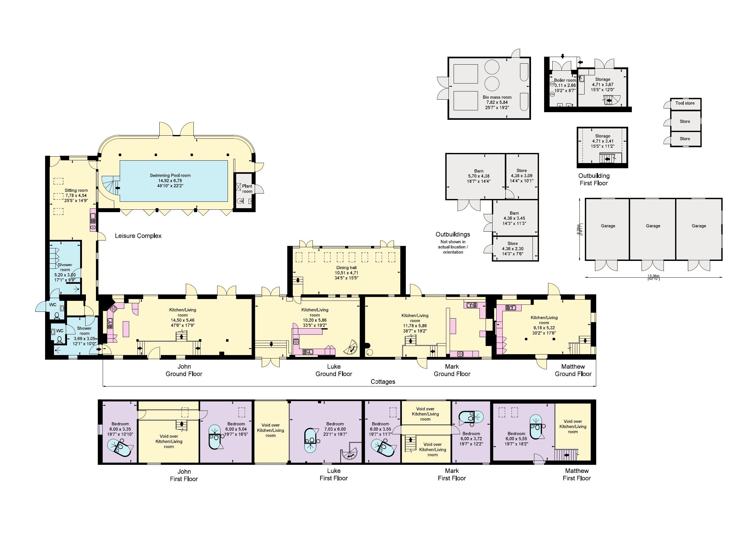 Adjacent to the main house stands a substantial barn, which has been thoughtfully converted into four additional homes and a leisure complex. For a time, the property also operated as a boutique hotel, but it has since returned to being a private family home.
