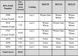 Lots 1 and 2 are in an arable rotation and lot 3 permanent is pasture. The arable land within lot 1 and lot 2 consists of grade II and III agricultural land with each field having a separate gateway for access from the