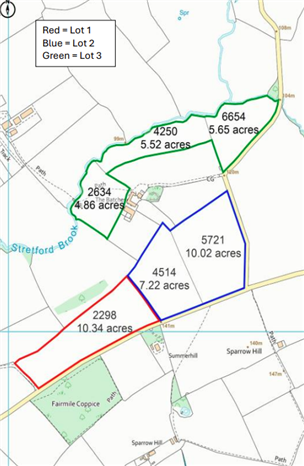 heading onto the A44 Worcester Road. Following the A44 take the 3rd left hand turning onto a long straight single-track road and Lot 1 and Lot 2 will be on your left-hand side. Take the first left hand turn and follow until Lot 3 is on your lefthand side.
