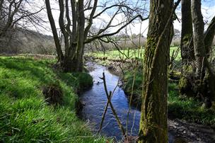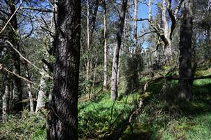 This is a stunning mixed tree woodland alongside a brook, with glades and mature trees: unvisited, and full of wildlife. Trees are a mix of mature and young, coniferous and broadleaf. There are spots along the river ideal for the occasional camp. There are glimpses of the Shropshire Stiperstones.