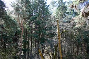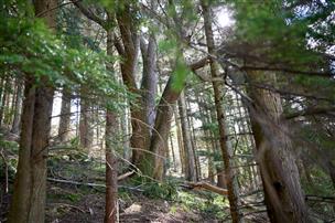 The majority of the woodland is well-spaced towering western hemlock, further up there are pioneer mature oaks.