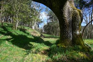 Running through the woodland are old historical walkways and tracks. We have gently started quad bike access into the woodland, follow this from the parking area at the top and check out the bench by the stream. What a place this would be to camp! Flat, with a stream trickling by.