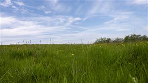 The gently rolling meadow is well drained. This allows varied flowers to thrive, from the spring and summer flowers such as Germander Speedwell to Lady's-smock. In turn this supports a variety of insects, moths and butterflies.