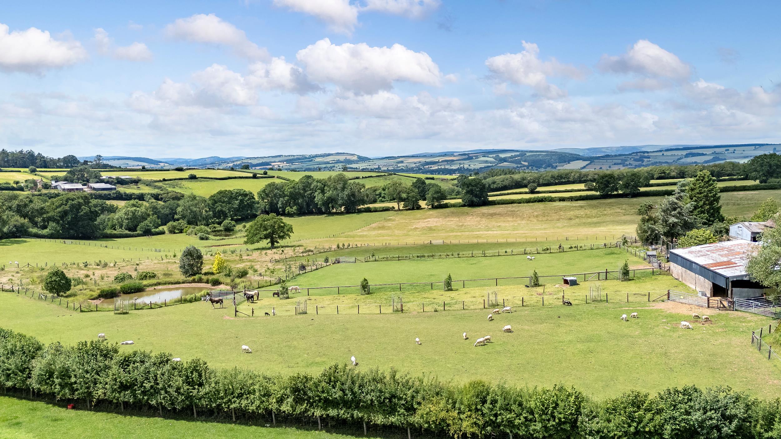 For equestrian enthusiasts and walkers, an extensive network of bridleways and public footpaths surround the property, renowned as some of the finest in the area. The house enjoys panoramic westerly views towards the Long Mynd and the Welsh hills, providing a spectacular backdrop throughout the seasons and magnificent sunsets.