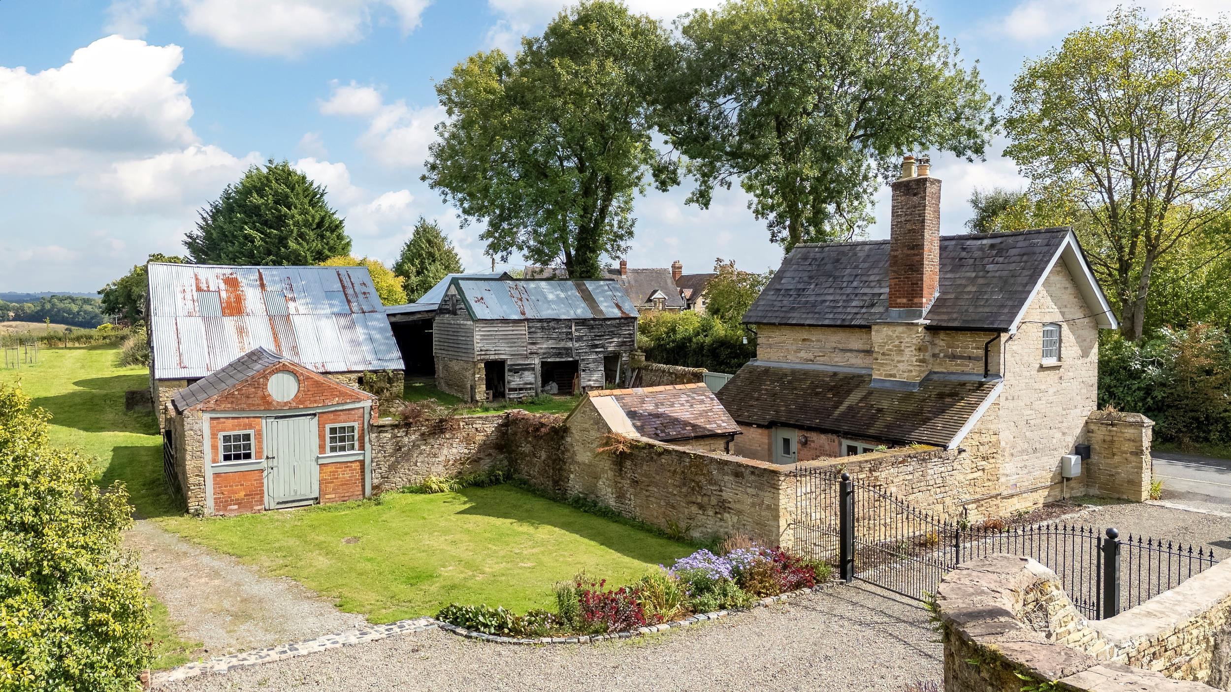 A detached red brick barn with a charming walled garden to the front and gardens backing onto fields to the rear. Now used for storage, garaging, and as a workshop, it also once had (now lapsed) planning permission for conversion to a dwelling.