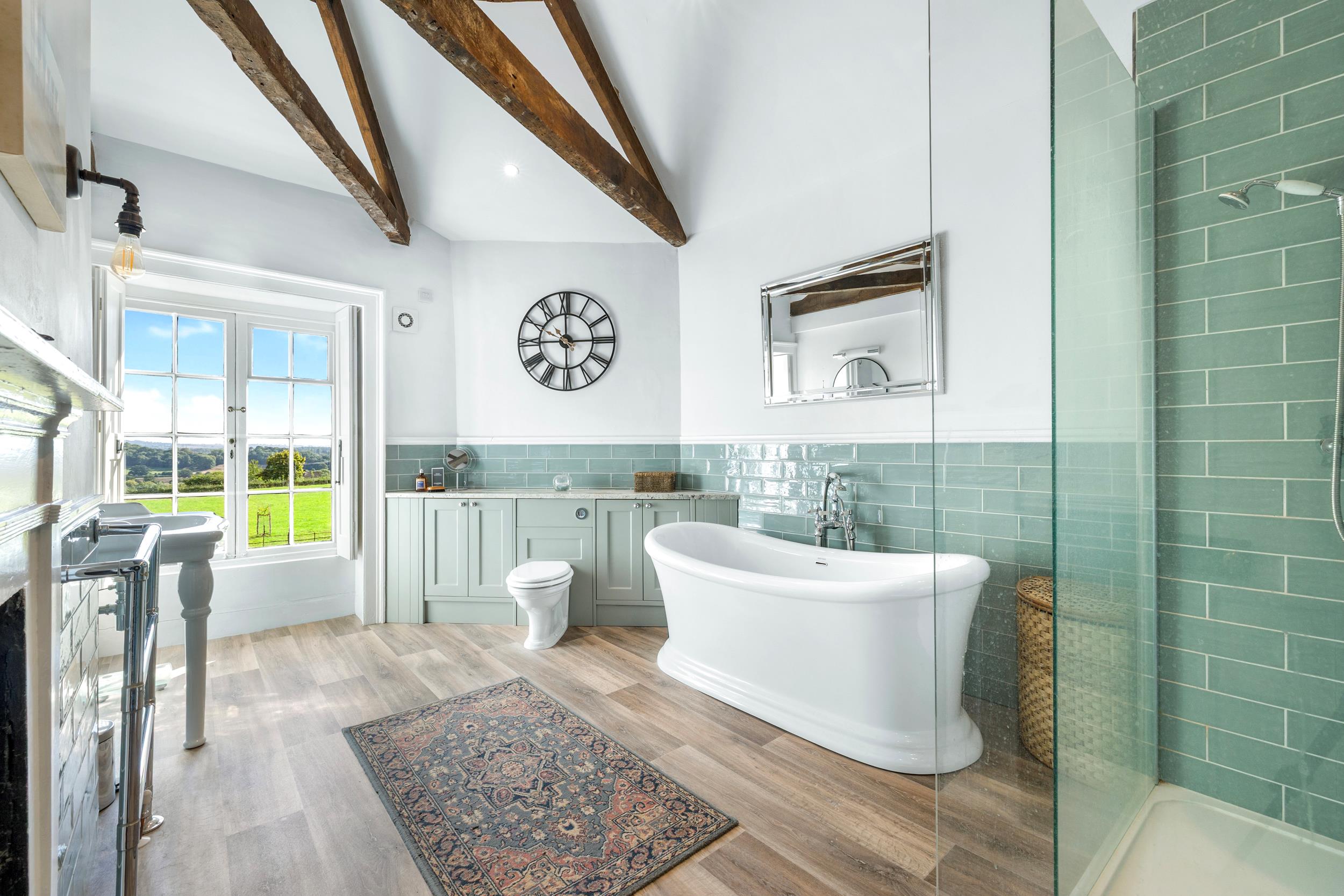 The main house, dating from the late Georgian/early Regency period, has been carefully and lovingly renovated by the current owner over the past five years, following over sixty years in the previous family's ownership. The house retains a wealth of period features, combining charm and character with extensive accommodation extending to about 5,000 sq ft. There are a range of elegant reception rooms and well-proportioned bedrooms on the first floor. The front of the house has an easterly aspect, with views towards Clee Hill over the paddock.