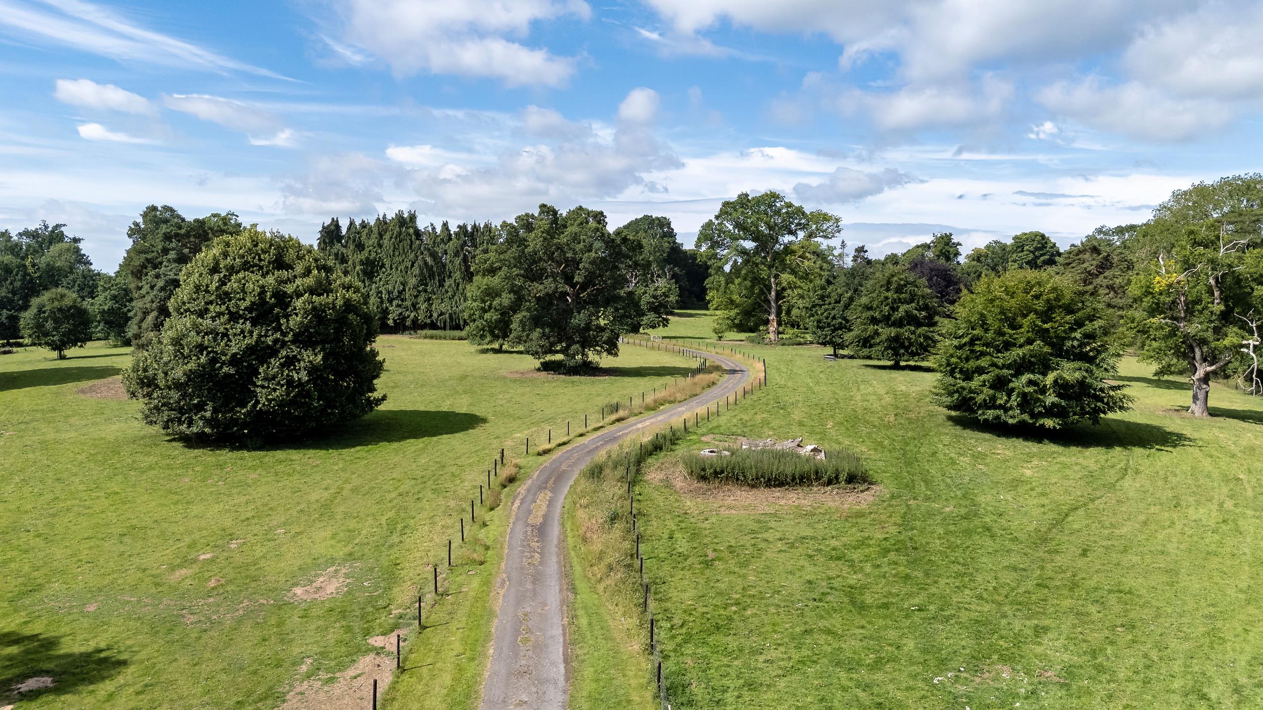 The driveway sweeps up through the parkland with paddocks and mature trees screening the property from the road. A gravelled driveway spurs to the parking and turning area to the front of the house, continuing to the rear of the house where there is garaging, a courtyard, further parking and the Coach House. To the rear of the property is a walled garden, Grade II listed in its own right, which currently houses a tennis court (in need of resurfacing) and an old Victorian greenhouse that requires rebuilding. An excellent space with great potential to create something quite special, it also has the benefit of a separate access for the driveway to the rear off Wheat Common Lane.