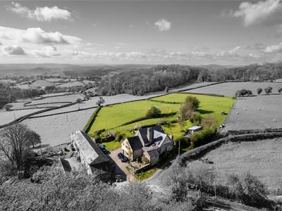 A versatile property full of character features, set in a desirable location offering beautiful countryside views. The current owners have lived here for over 30 years, and more recently used the property as holiday lets/guests rooms. In brief the accommodation offers five bedrooms, plus an attic room, family bathroom and three ensuite bathrooms, three receptions rooms, parking area and approximately 3.82 acres of land. Being offered for sale with no onward chain.
