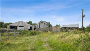 A traditional Stone-built Barn under steeply pitched, slated roof with adjacent single storey stone-built barn under steel sheeted roof with side steel sheeted walls.