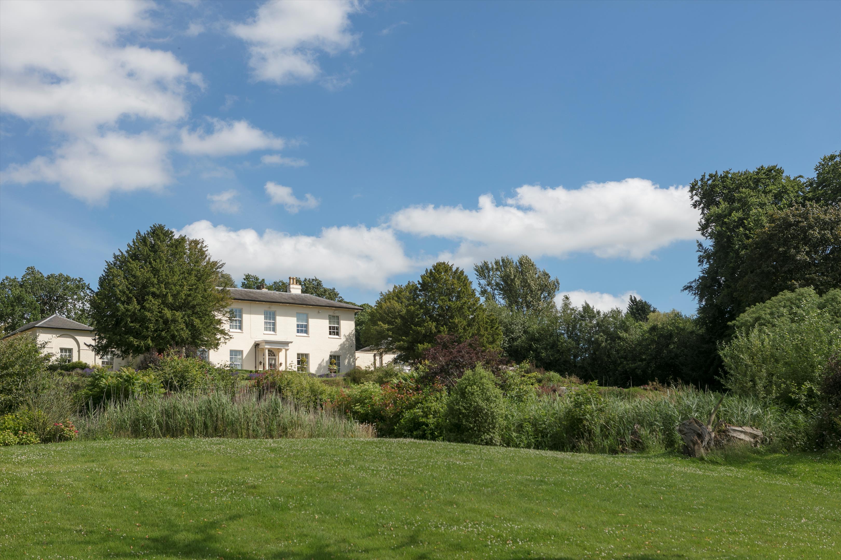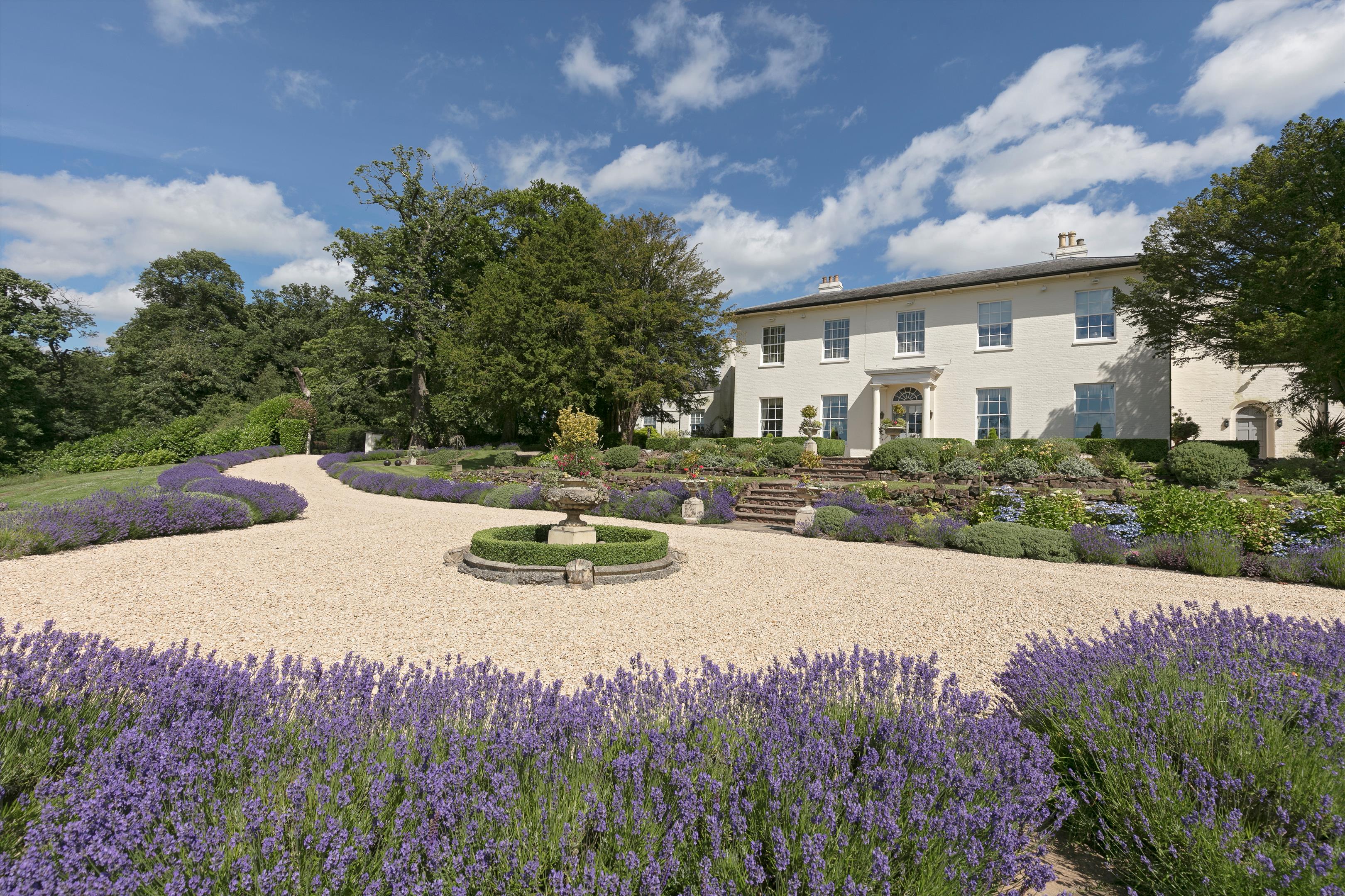 Tucked away on a country lane in the historic village of Meriden, Meriden House is an outstanding Grade II listed Georgian residence set within 6.14 acres of beautifully landscaped gardens. Accessed via double electric gates, a sweeping gravelled drive leads to a turning circle, with the house elevated to the left, offering an impressive sense of arrival. Built in 1792, the property boasts exceptional proportions and elegant symmetry characteristic of the Georgian era. The architectural significance of the house is reflected in its listed status, denoting it as a building of historic and architectural interest.