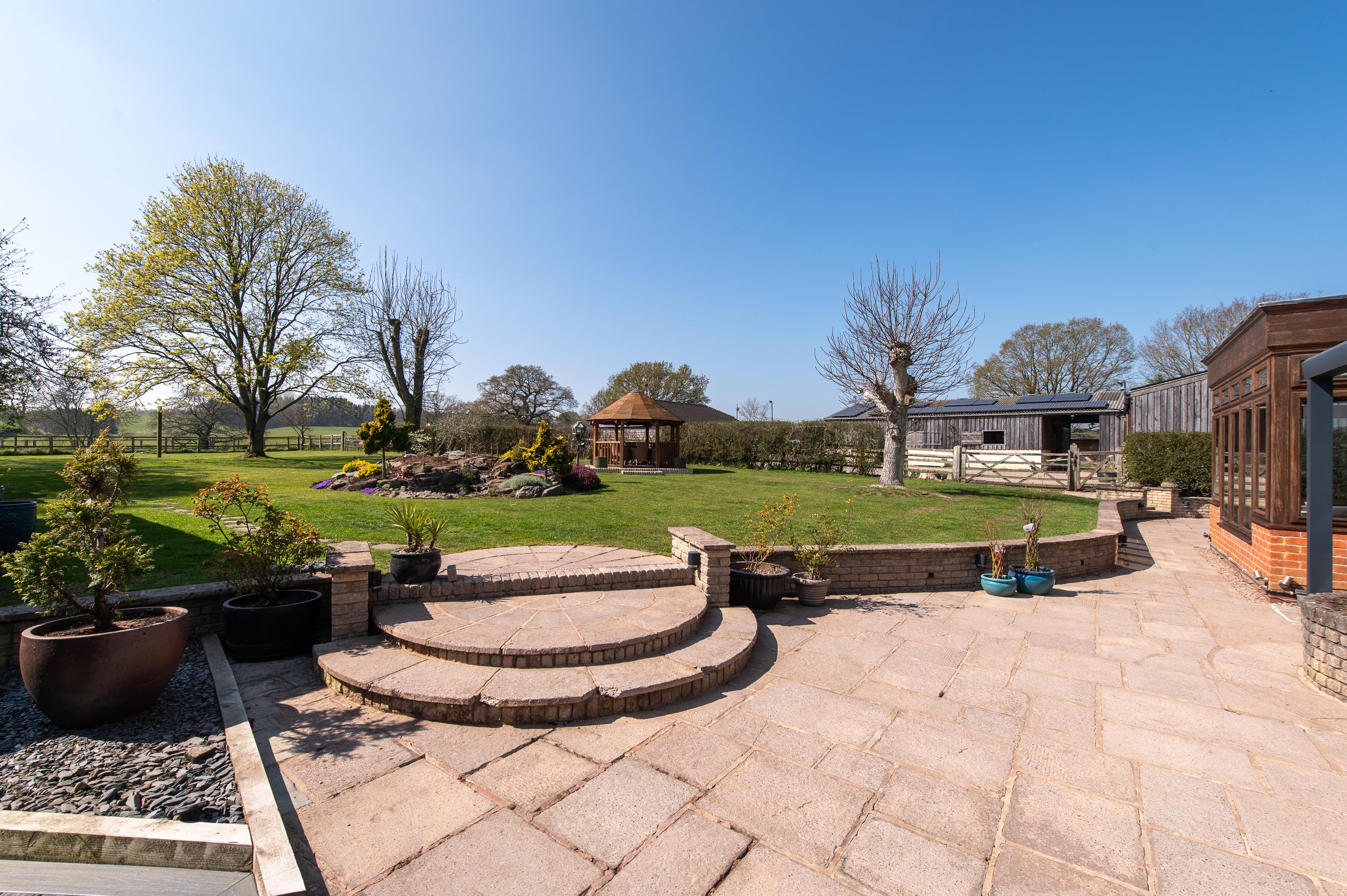 The exterior of Beaconsfield is a standout feature, offering beautifully landscaped formal gardens with far-reaching views across the surrounding countryside. Designed for both relaxation and entertaining, the gardens include a covered patio area ideal for outdoor dining, a large summer house, and a teepee-style pergola that provide unique spaces to enjoy year-round. The expansive lawn is bordered by mature shrub beds and herbaceous borders, offering seasonal interest and colour.