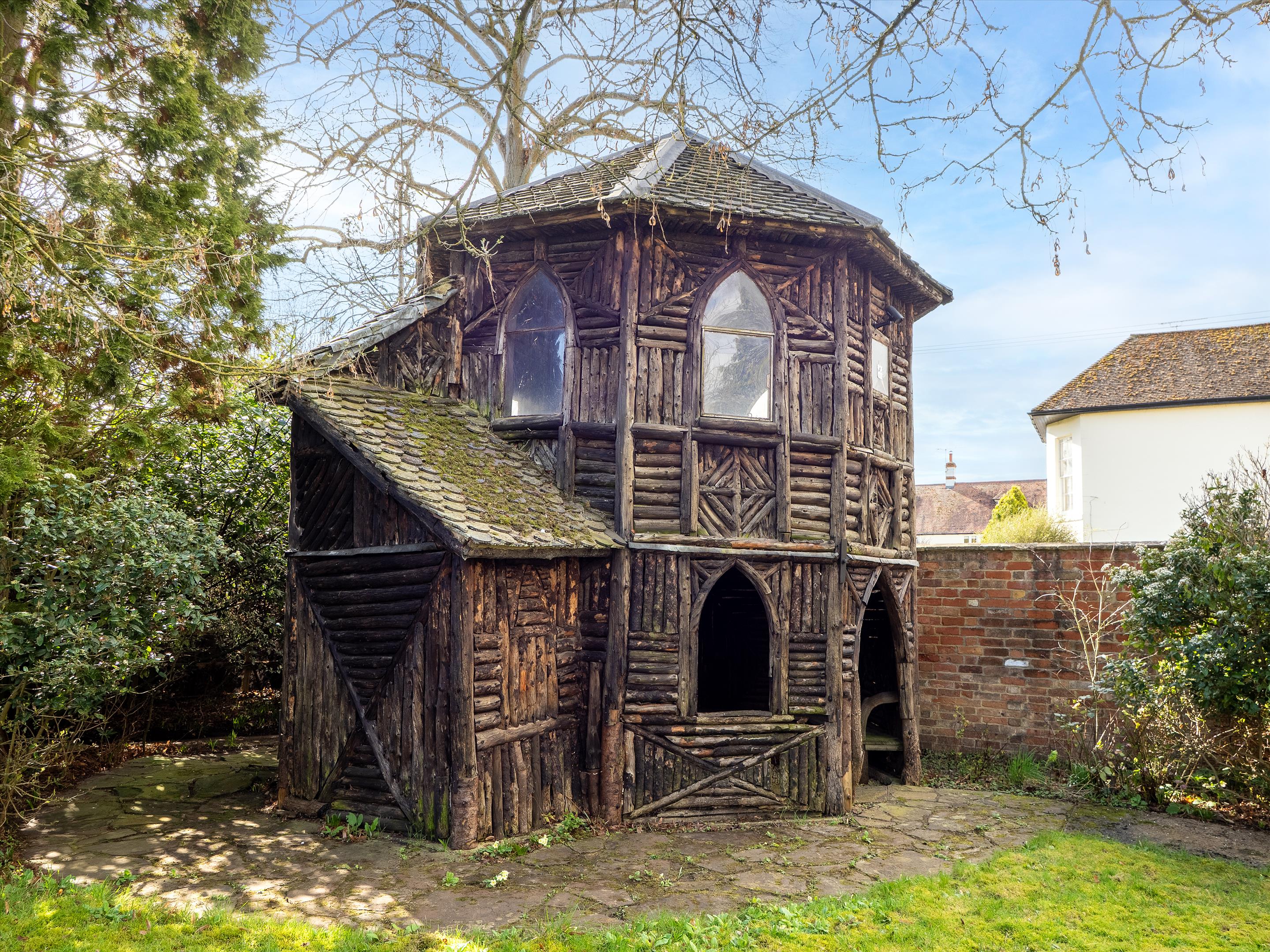 The grounds also feature a unique Grade II listed, two-storey summerhouse dating from the mid-19th century. With its distinctive Gothic detailing, it stands as a striking reminder of the property's rich heritage and offers an appealing focal point with a variety of possible uses (subject to the necessary consents).