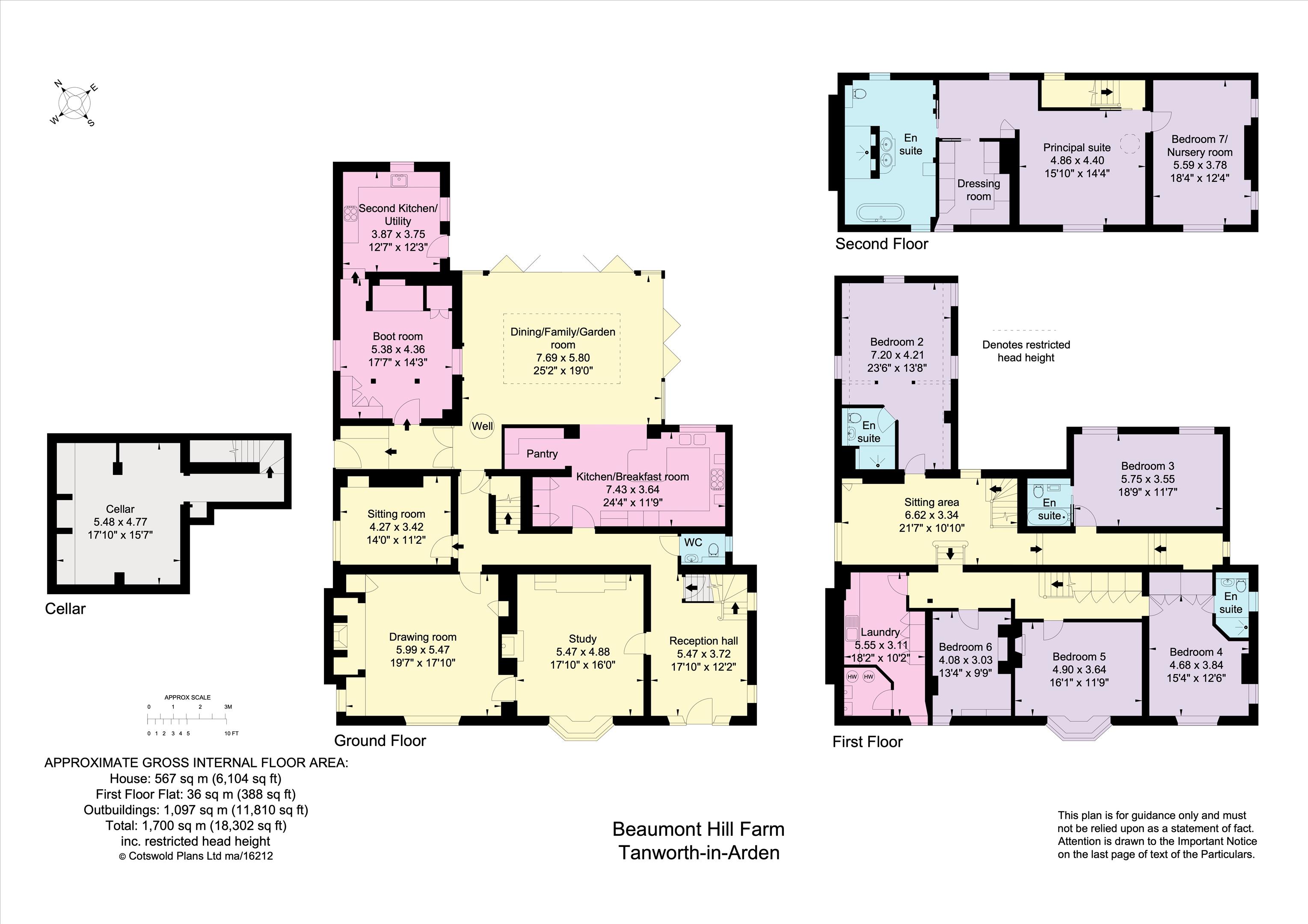The first floor benefits from having five double bedrooms, three en suite bathrooms and a laundry room. The second floor houses the principal suite with nursery room/bedroom seven, a well-appointed dressing room and enviable en suite bathroom. It is clear to see Beaumont Hill Farm offers an excellent range of well-appointed accommodation throughout, perfect for a family.