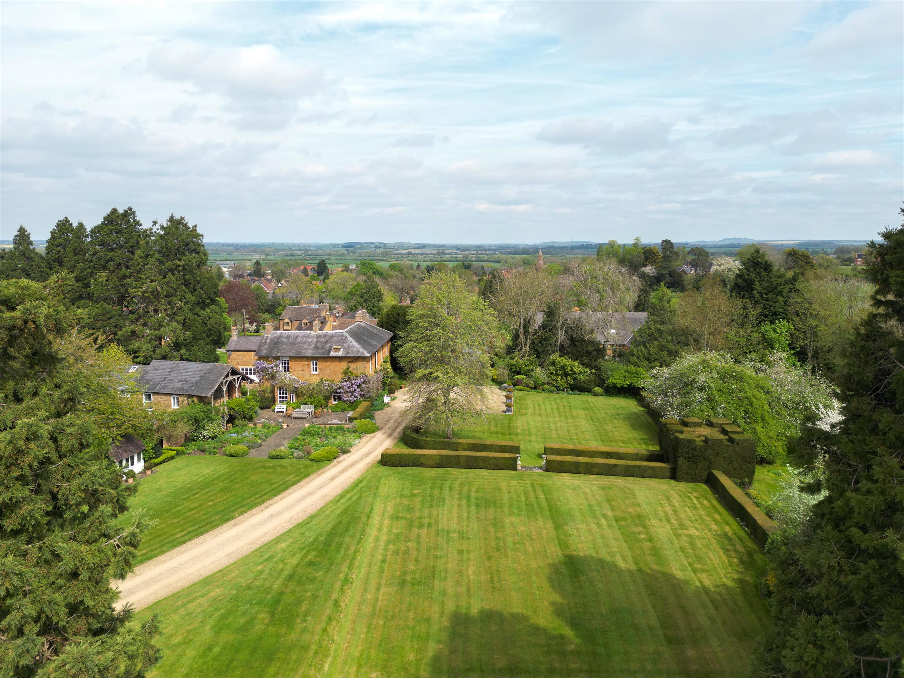 Fenny Compton Lodge is beautifully situated on the south fringe of the village, with views to the Burton Dassett Hill Country Park, approached along a private drive with mature trees, and with a secondary access off the rear courtyard on to The Slade.