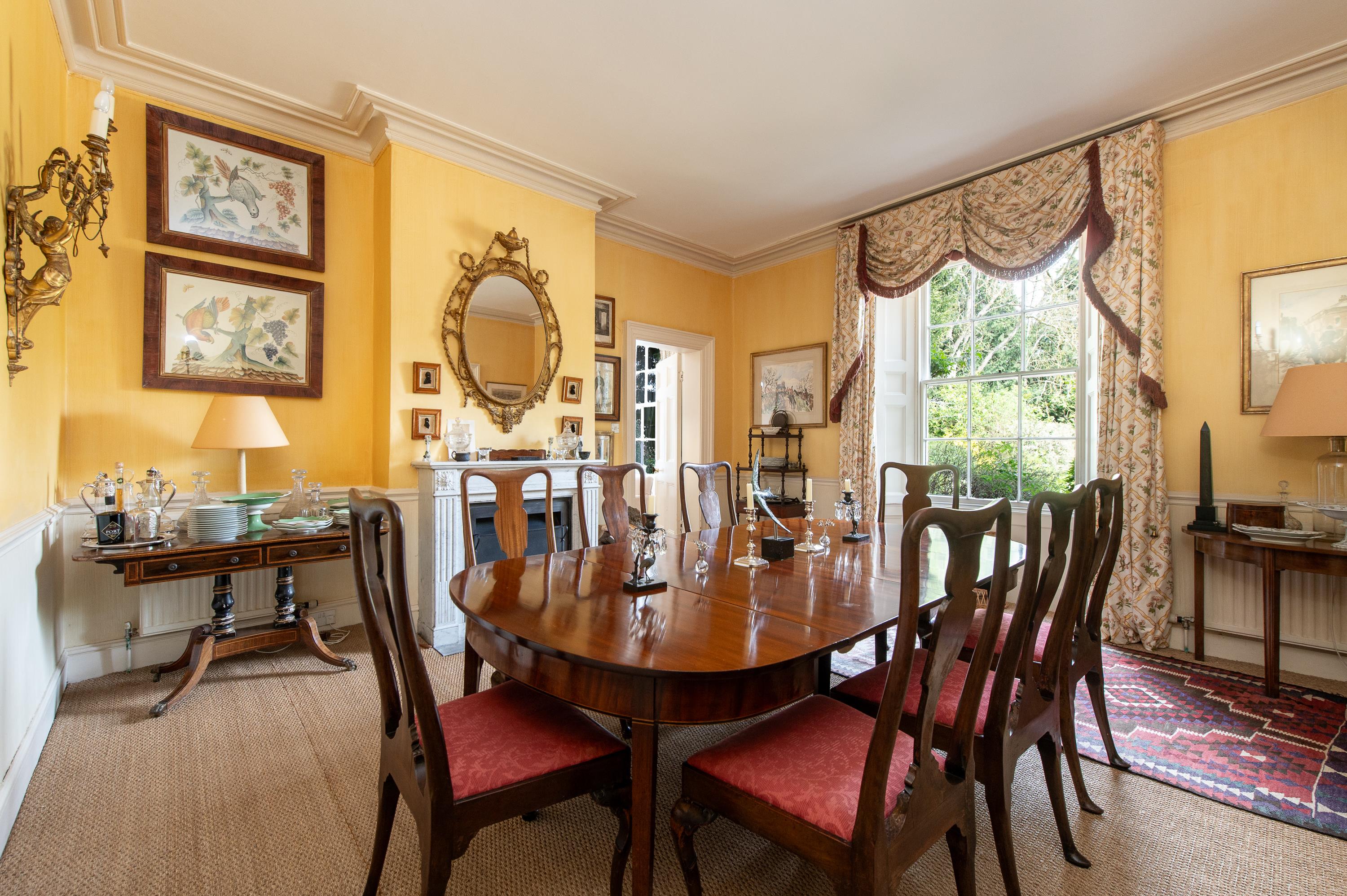 With accommodation extending to over 6,000 square feet, the property has very comfortable, well-proportioned rooms with attractive period features, including two early 19th-century fireplaces, moulded cornices, panelled doors and attractive architraves. Off the reception hall, with its original staircase rising, are a formal south and east-facing drawing room, sitting room with a south-facing bay incorporating a door to the lovely wide patio with views to the south over the garden and parkland. Cloakroom and handsome dining room, and beyond that is a kitchen/breakfast room with a fitted kitchen with appliances and Aga, door to the back staircase to the rear wing bedrooms. Adjoining study, utility room, boot room, pantry and a further reception room, currently adapted to a ground floor bedroom/playroom with en suite shower room. There is a cellar, accessible from both inside the house and externally, providing useful storage, wine cellar and boiler room.