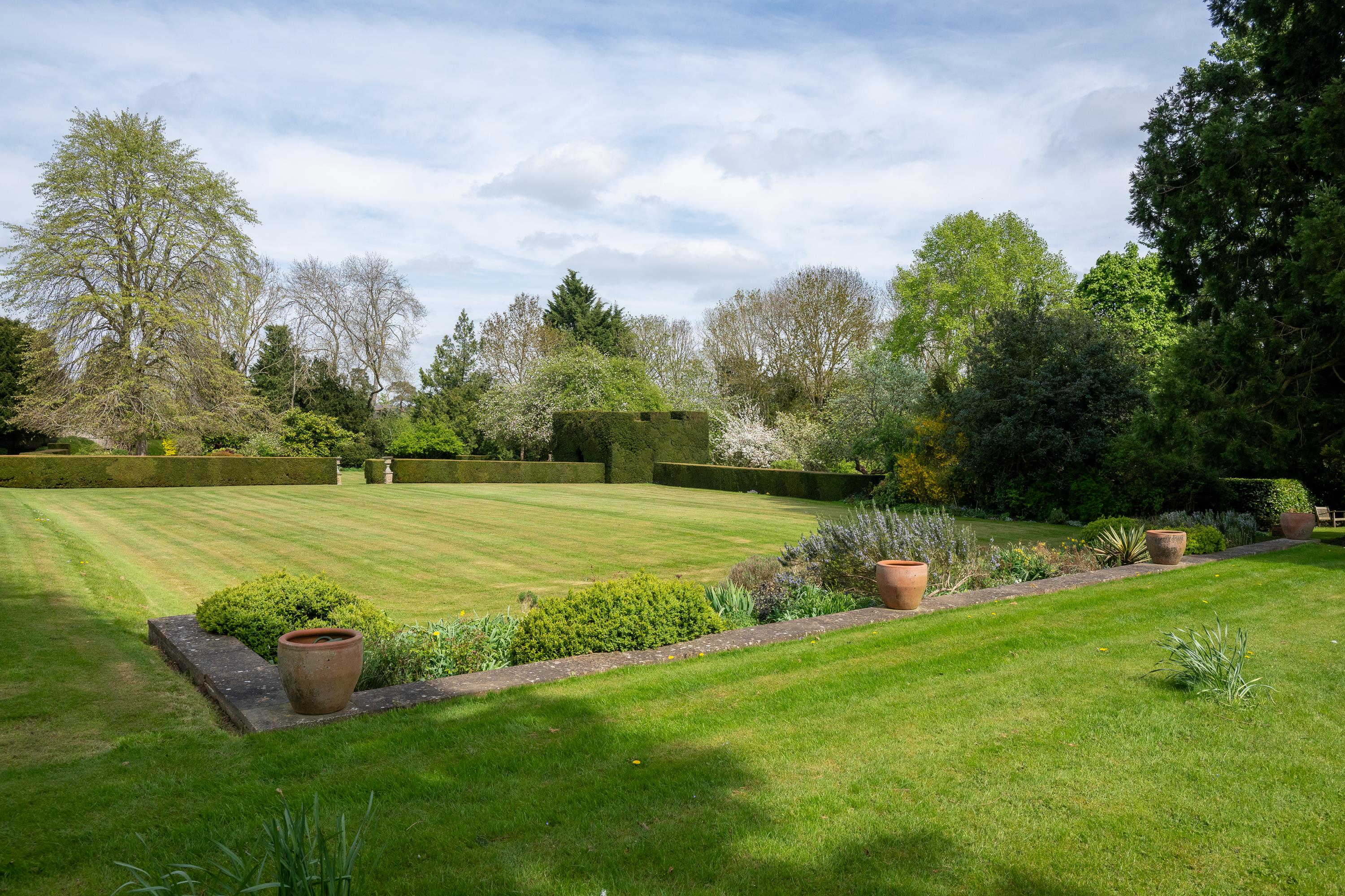 To the south side of the drive and garden, with uninterrupted views over the ha-ha, is the parkland field, gently sloping uphill and providing a lovely setting for the property. By the drive is an enclosed grass yard with barns and a further stable.