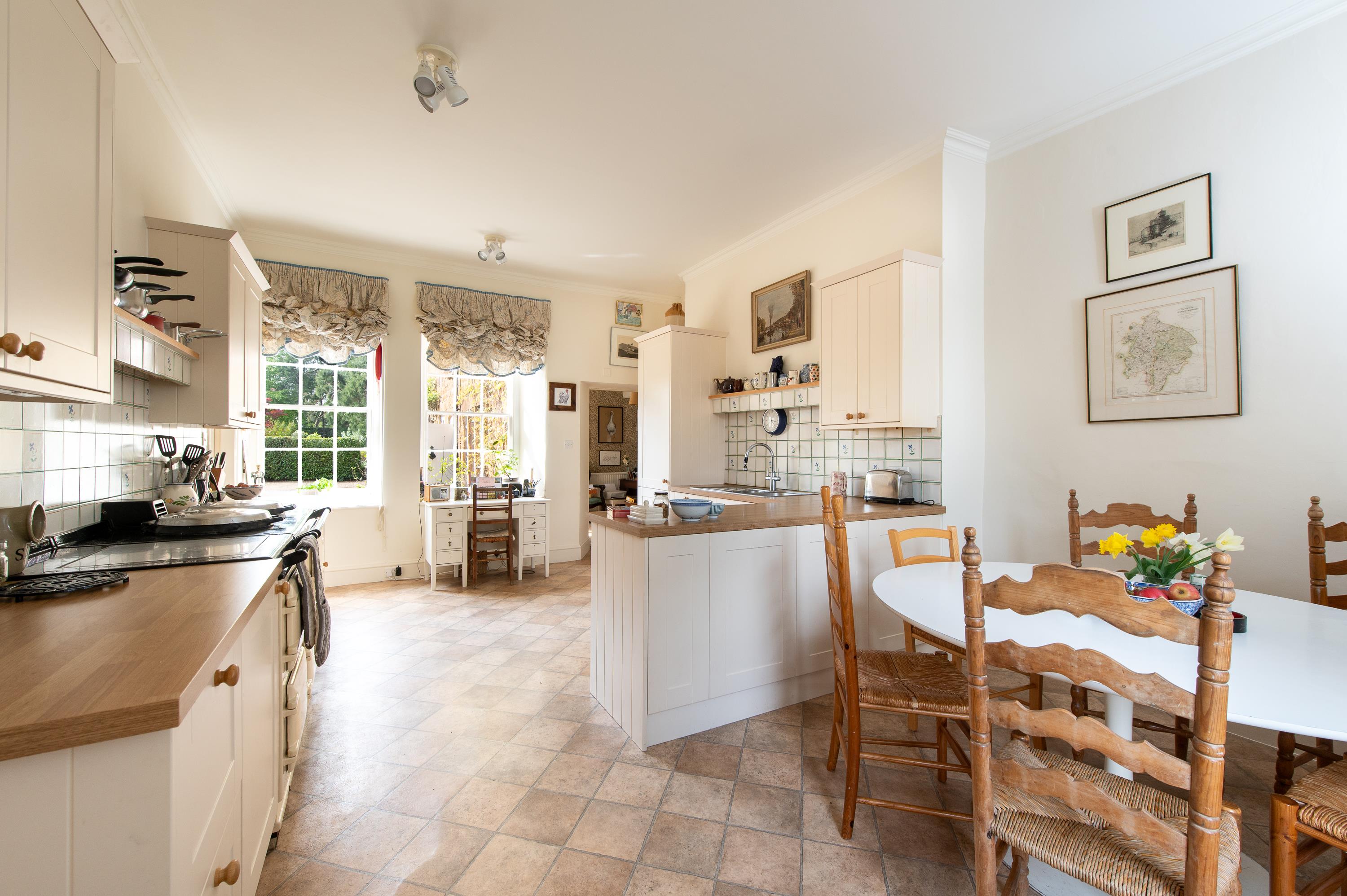 Across the rear courtyard is a ground floor apartment, suitable for a dependent relative or guests, with a sitting room, fitted kitchen with timber worktops and traditional cast-iron range, bedroom and shower room and a dining room, which has the flexibility to be accessed from the apartment or from the cottage.