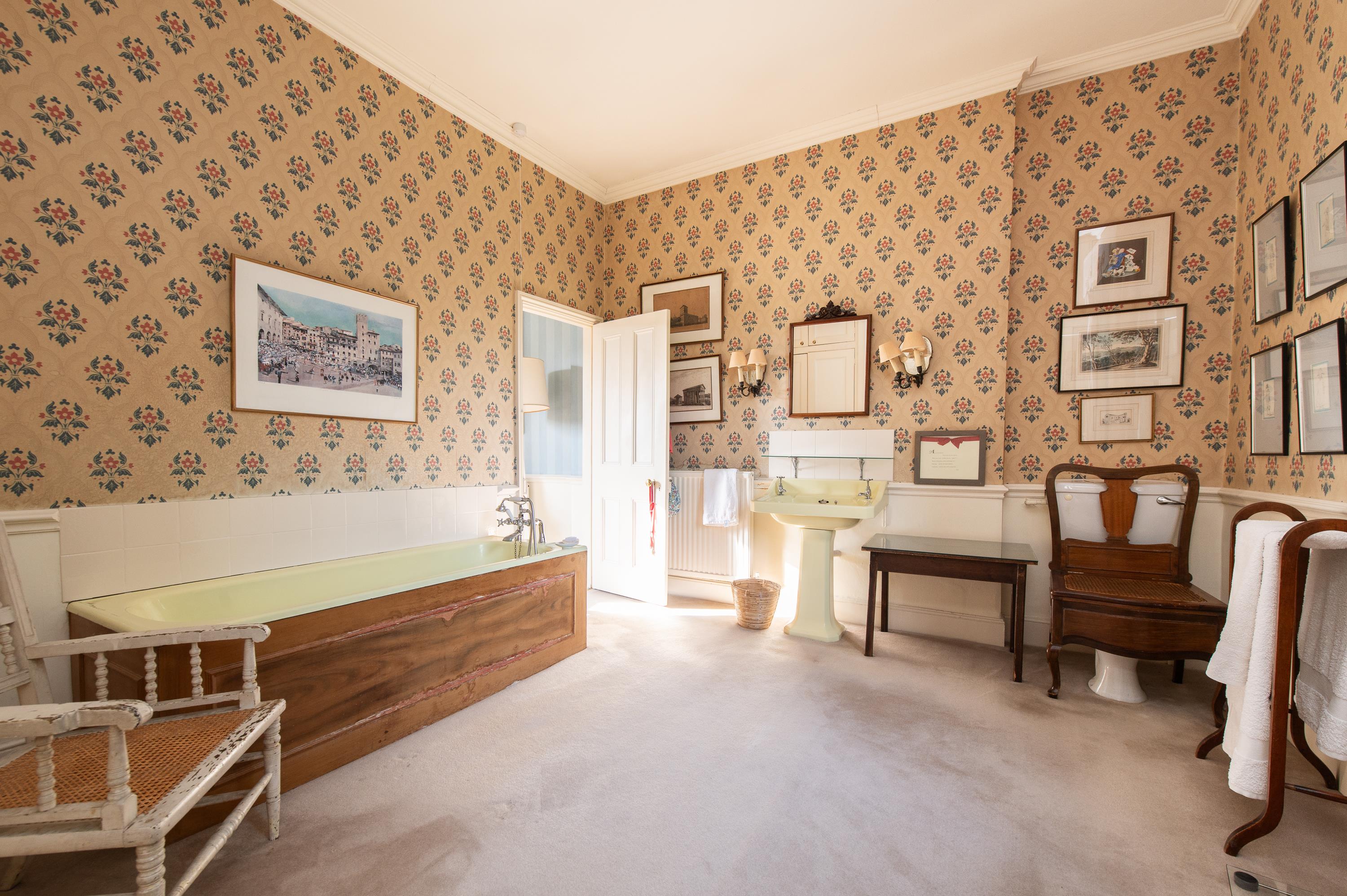 To the first floor, the Georgian staircase rises to a half-landing with south-facing bedroom two and family bathroom and access to the second-floor loft room, store and attic. The stairs continue to the main landing off which are two further lovely bedrooms and the principal bedroom with lovely views to front and rear, with en suite bathroom and a fitted dressing room which leads to the wing with a corridor with a small Gothic stone triangular oriel with arched lights and leaf corbel, serving three further double bedrooms and study/bedroom eight and a further bathroom.
