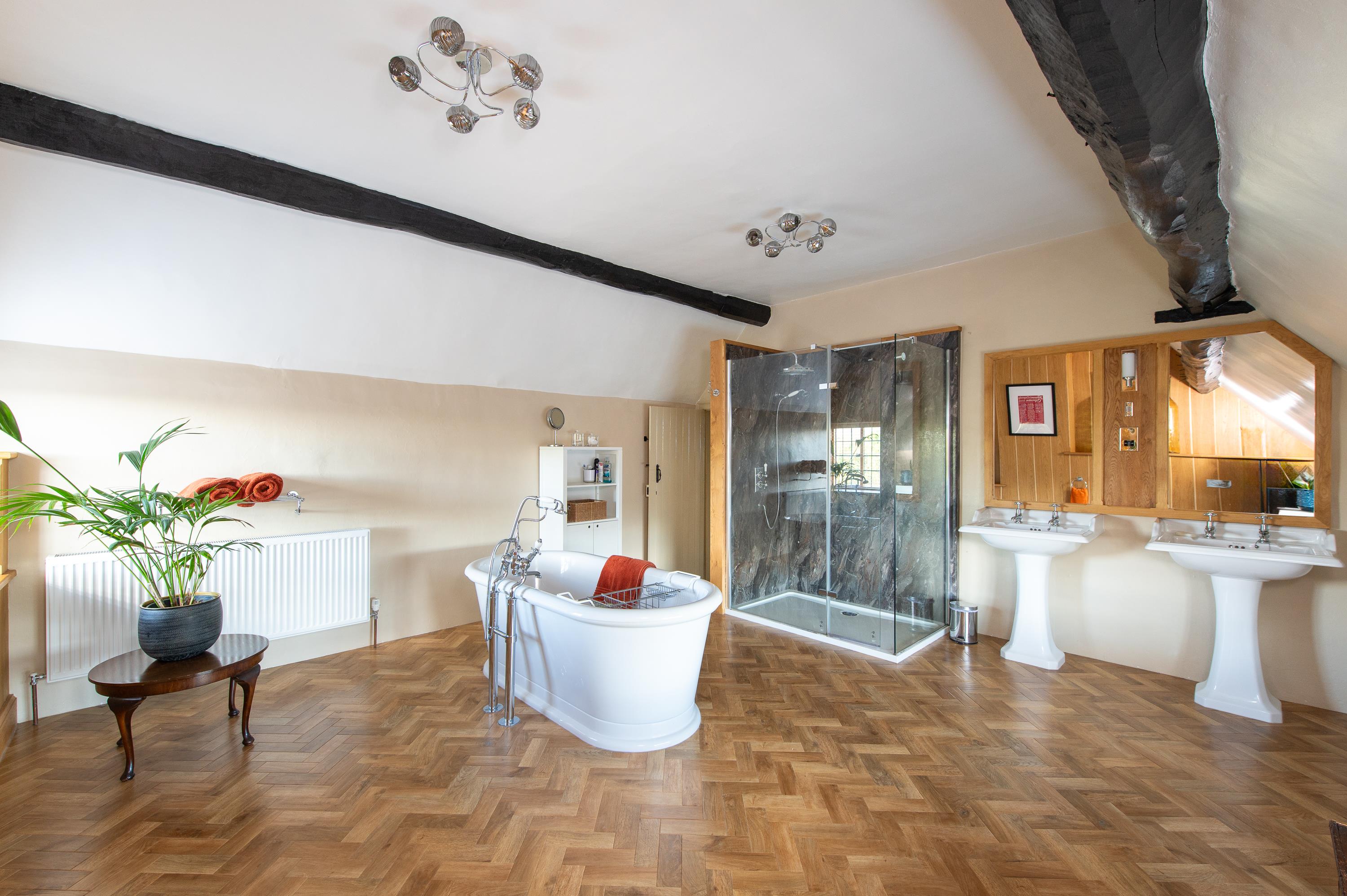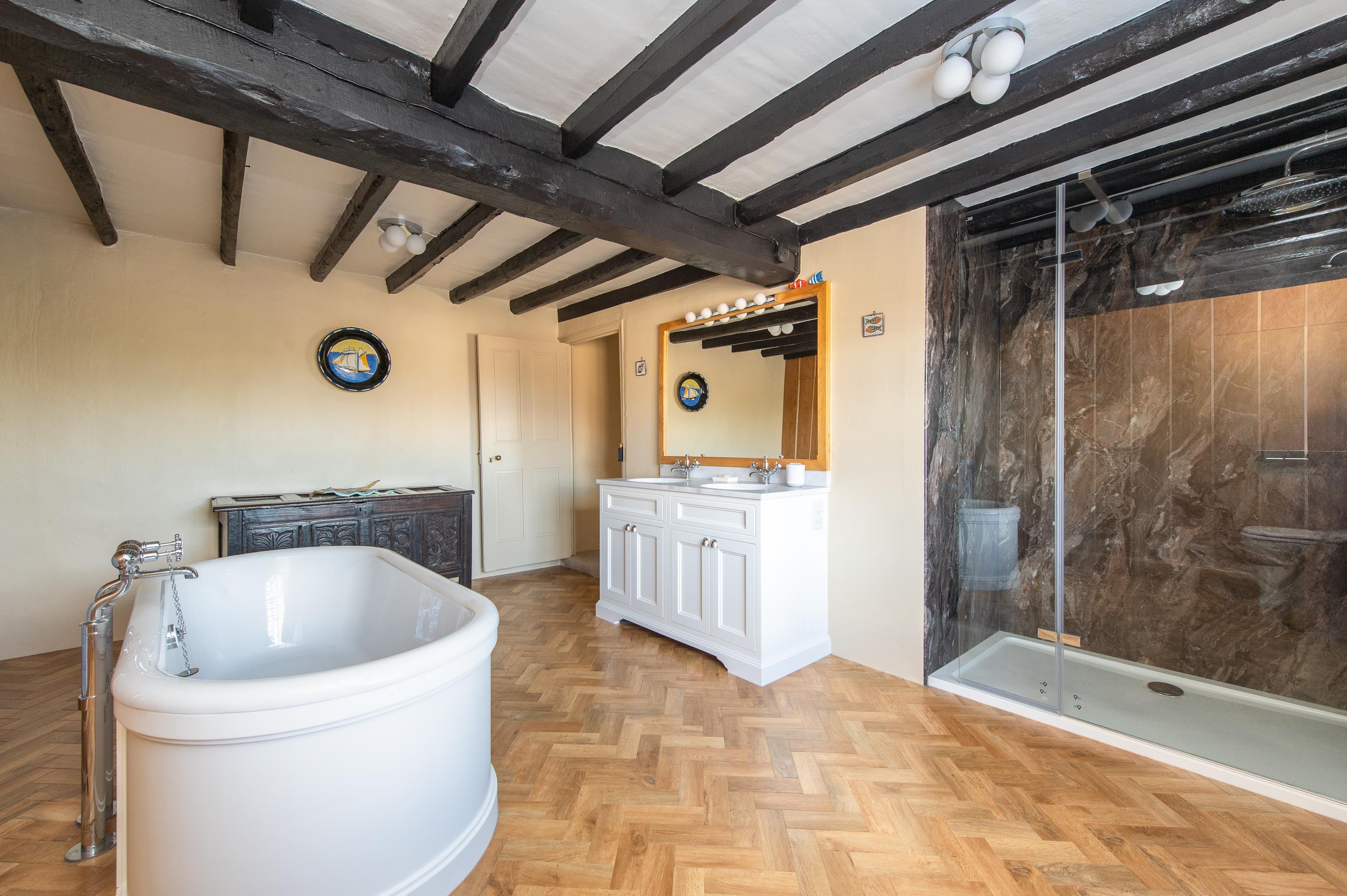 There are large bathrooms on both floors with free-standing baths, separate showers, WCs and, twin basins and Karndean flooring. There are ample storage cupboards throughout some with Georgian panelled doors.