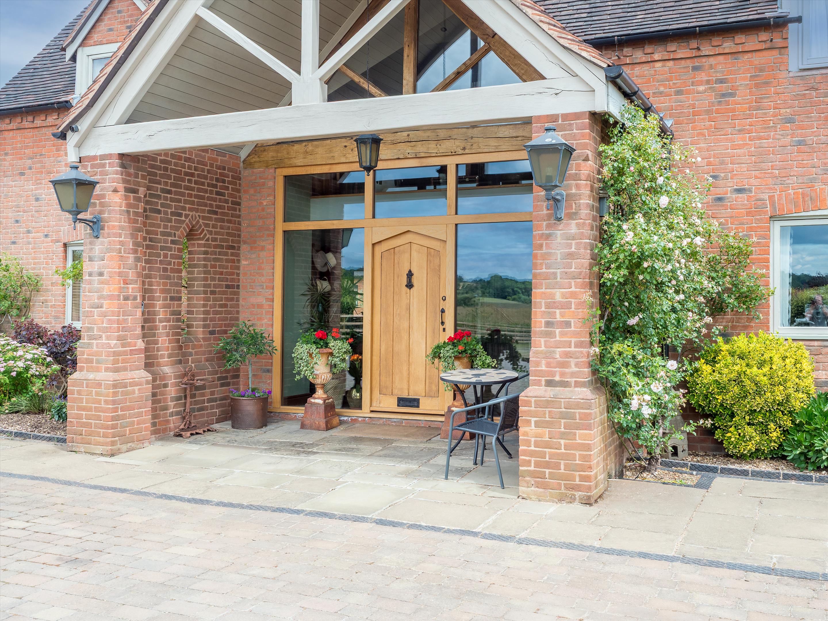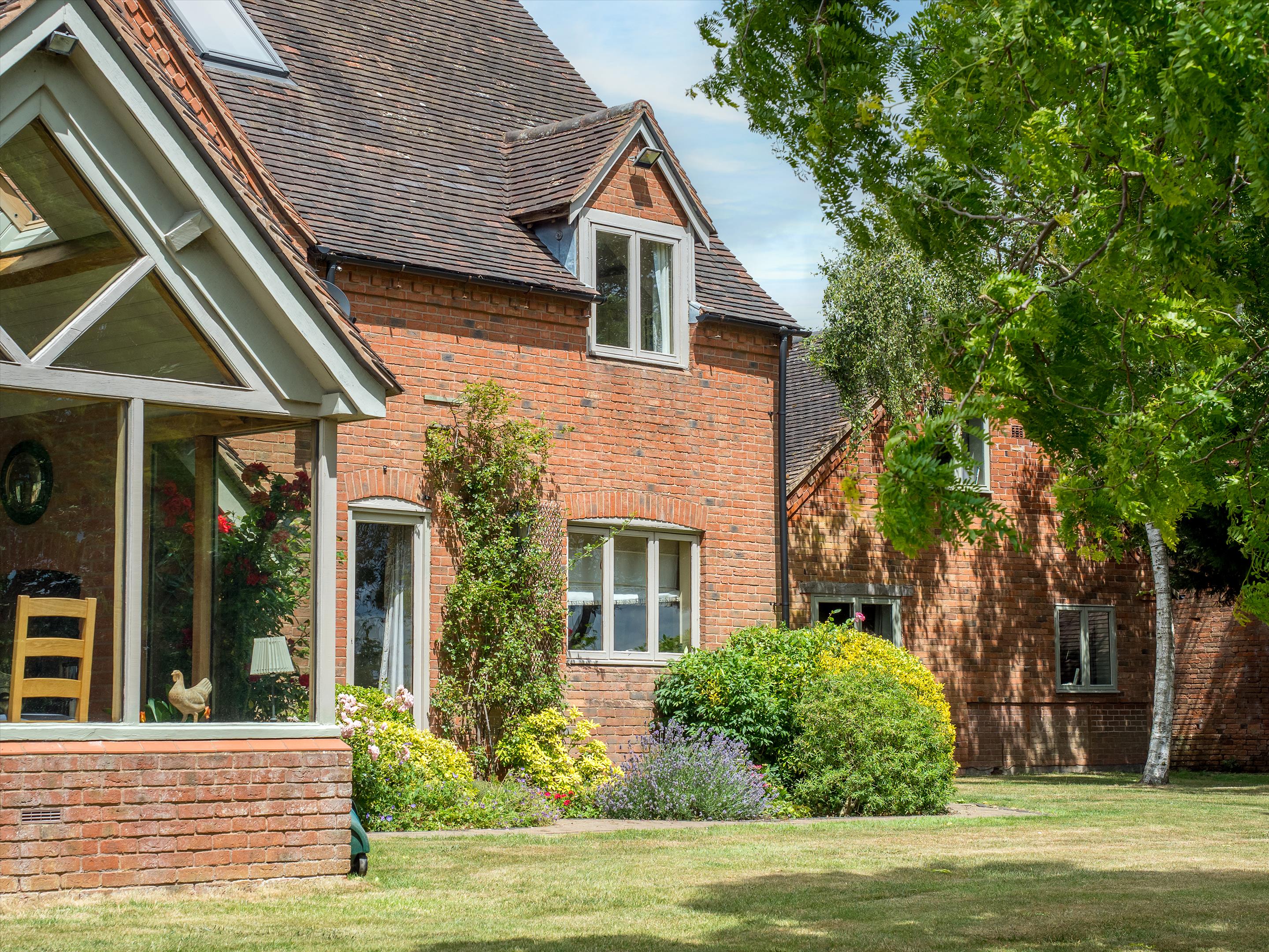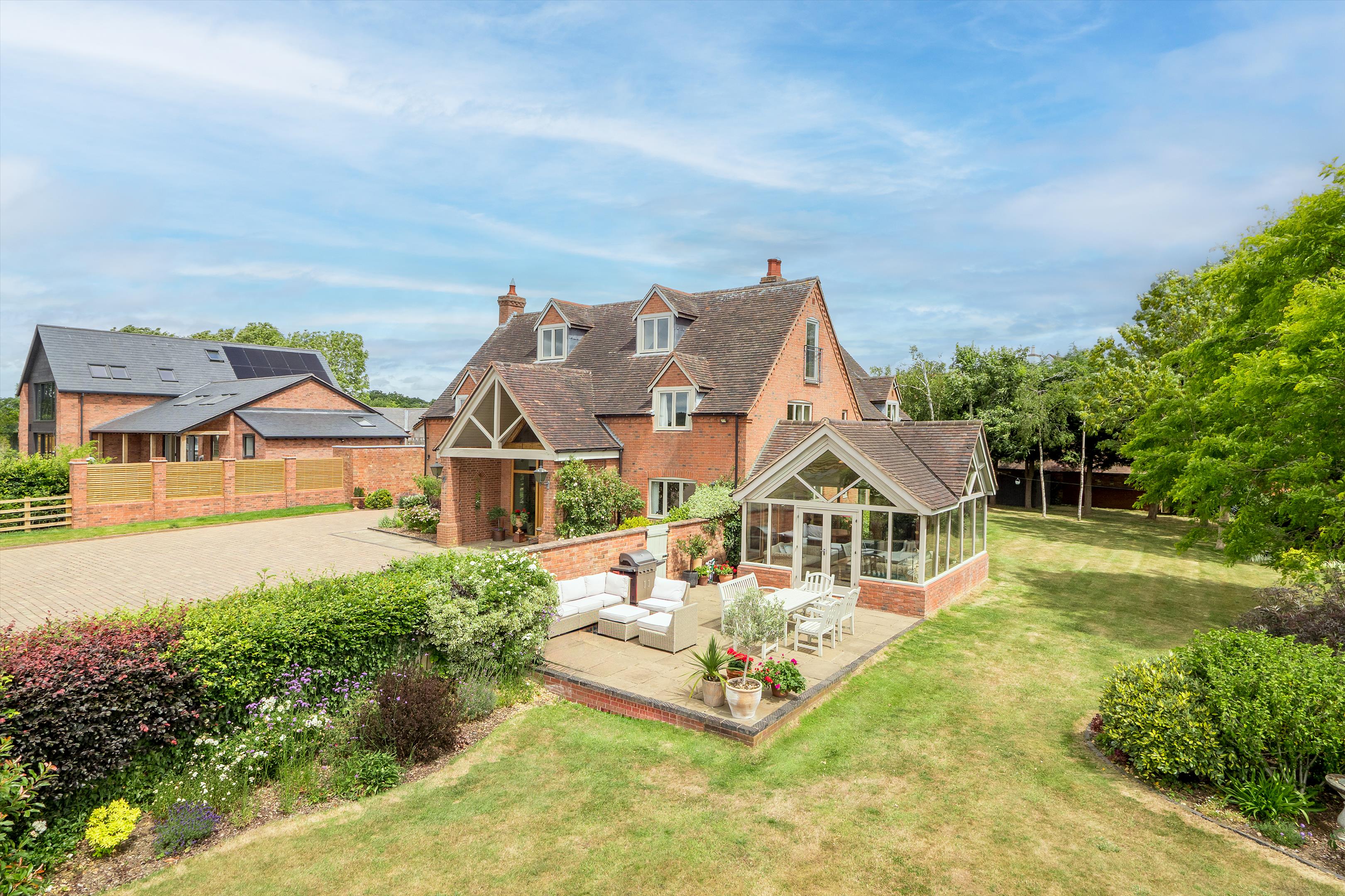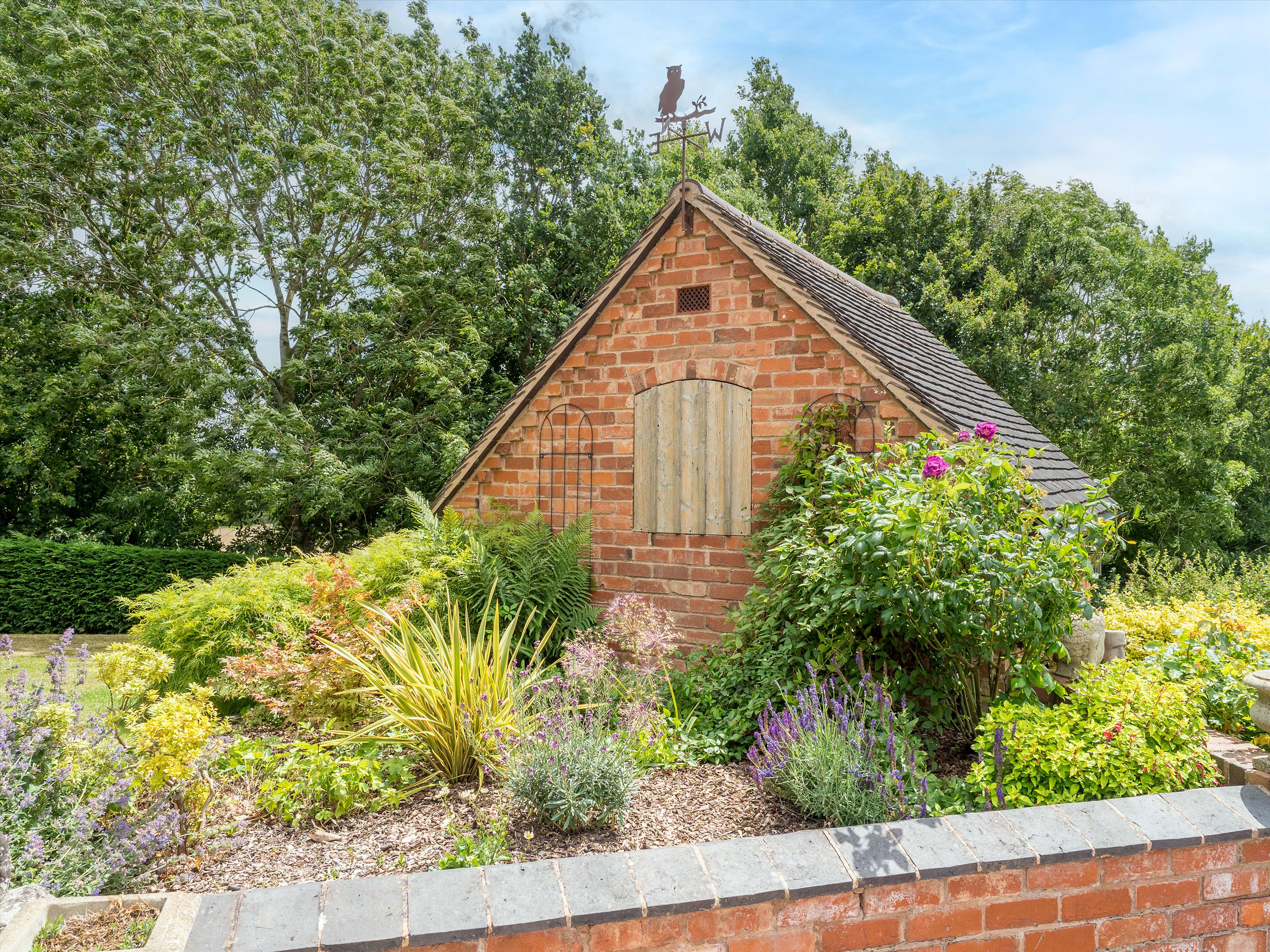 The beautiful formal gardens have a variety of mature trees, herbaceous borders, and large, predominantly lawned areas. A charming bothy with a circular terrace overlooks the tennis court, providing a perfect vantage point for spectators while offering enviable views over Stratford-upon-Avon and the picturesque Cotswolds in the distance.