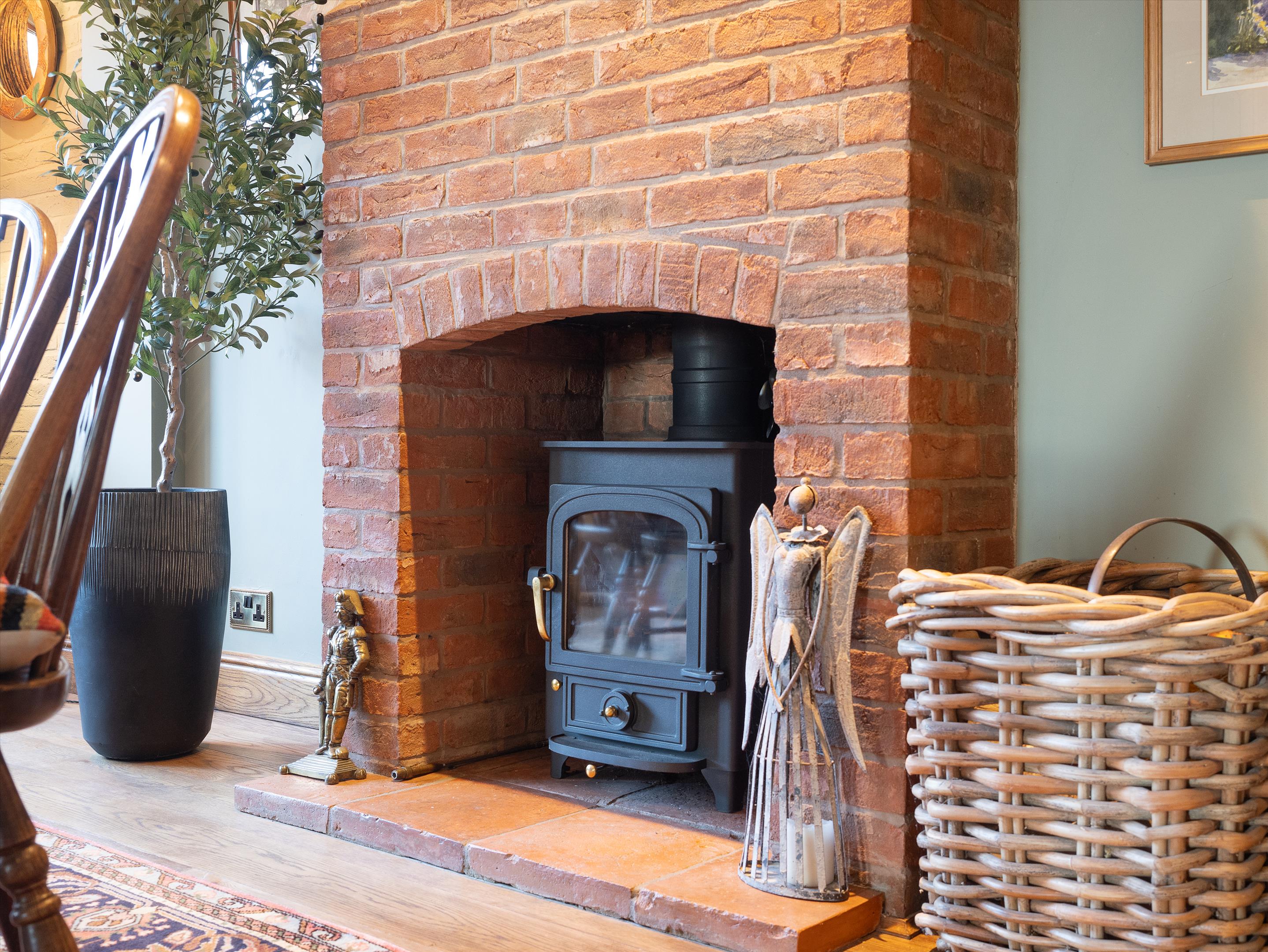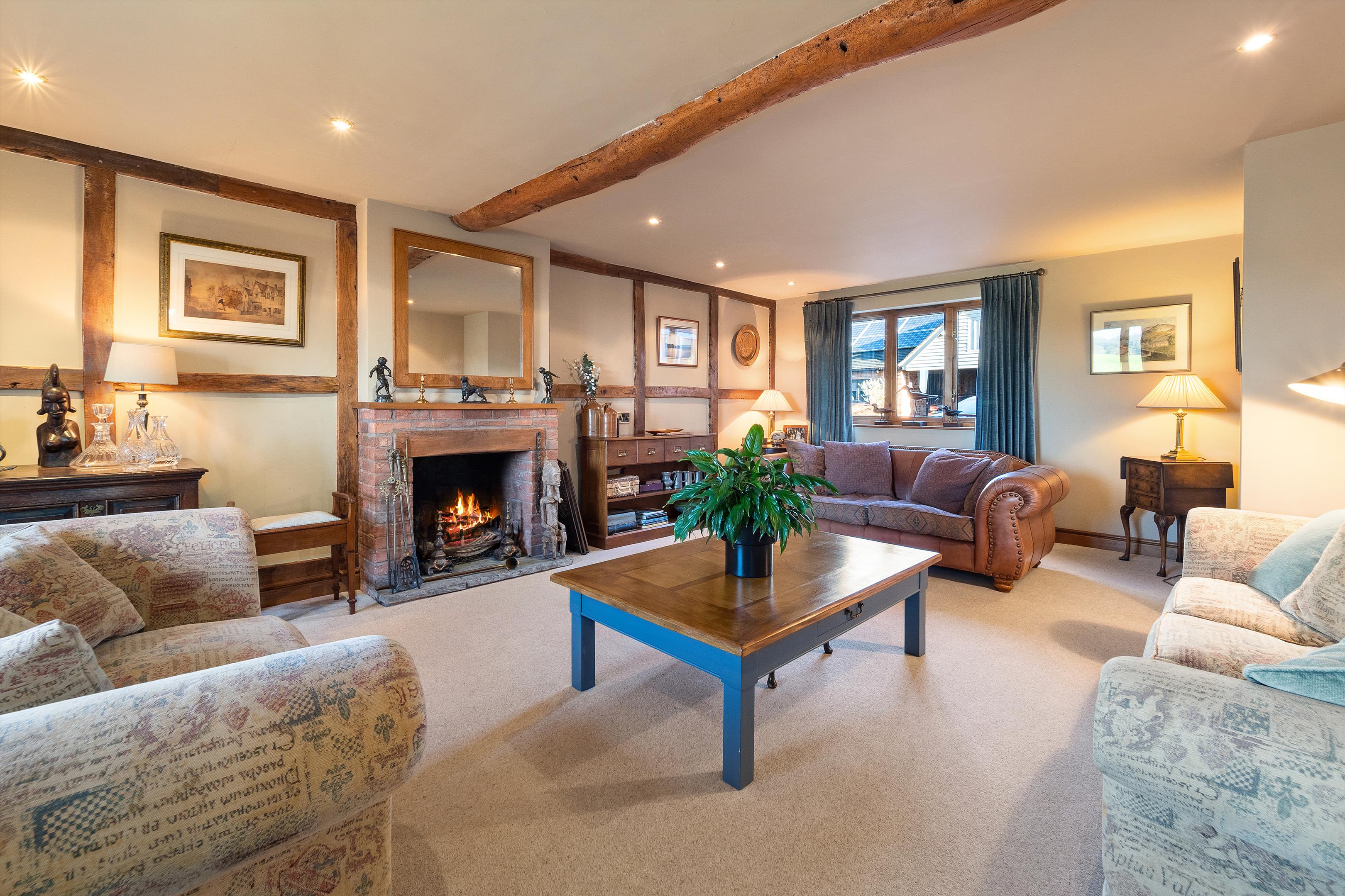 Upon entering the property, you are greeted by a spacious hallway with flagstone flooring, leading to the principal reception rooms. The large dual-aspect drawing room boasts an open fire, while the dining room features a cosy wood-burning stove. The sitting room also includes a fireplace with a wood-burning stove, and a study offers a quiet retreat.