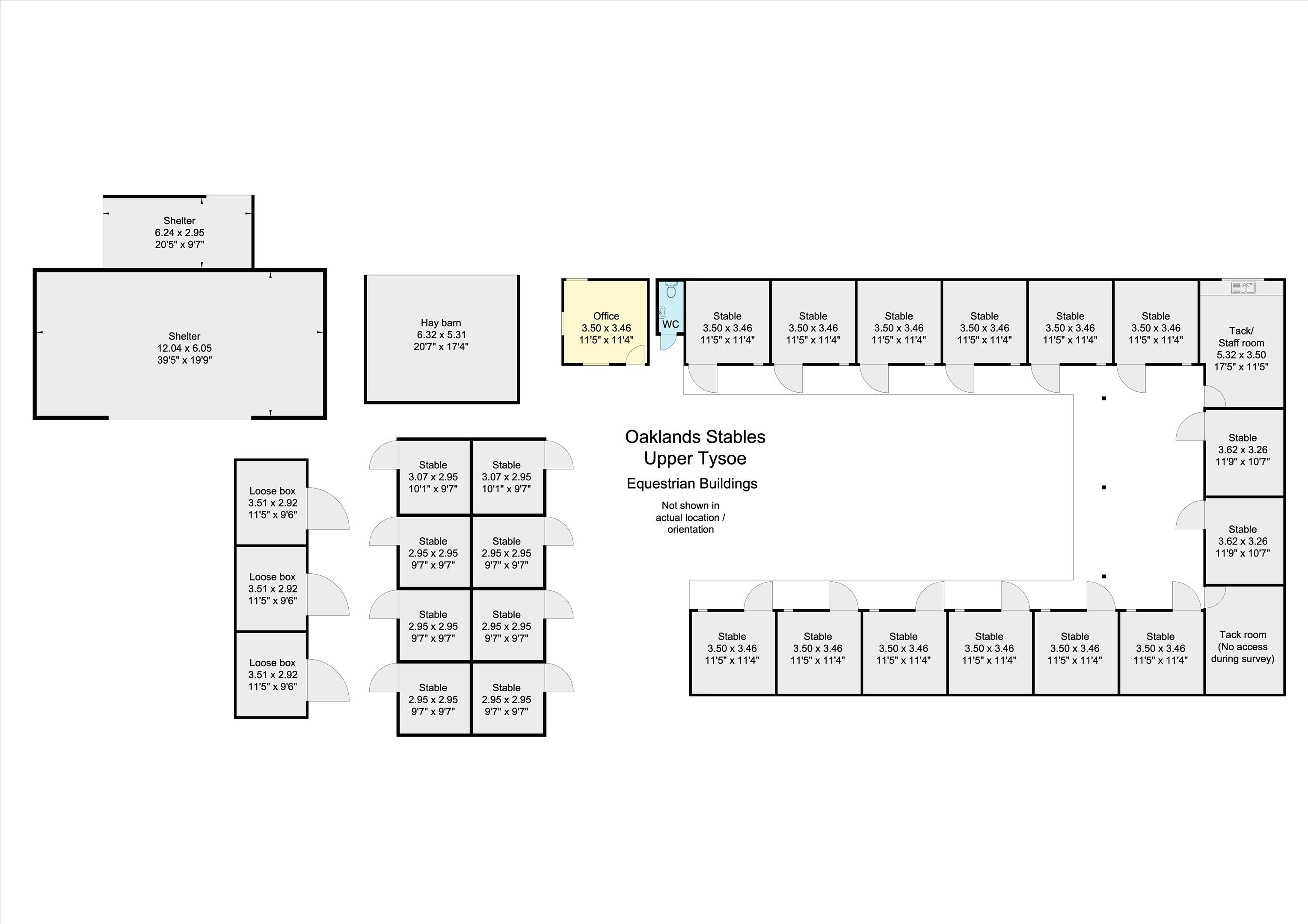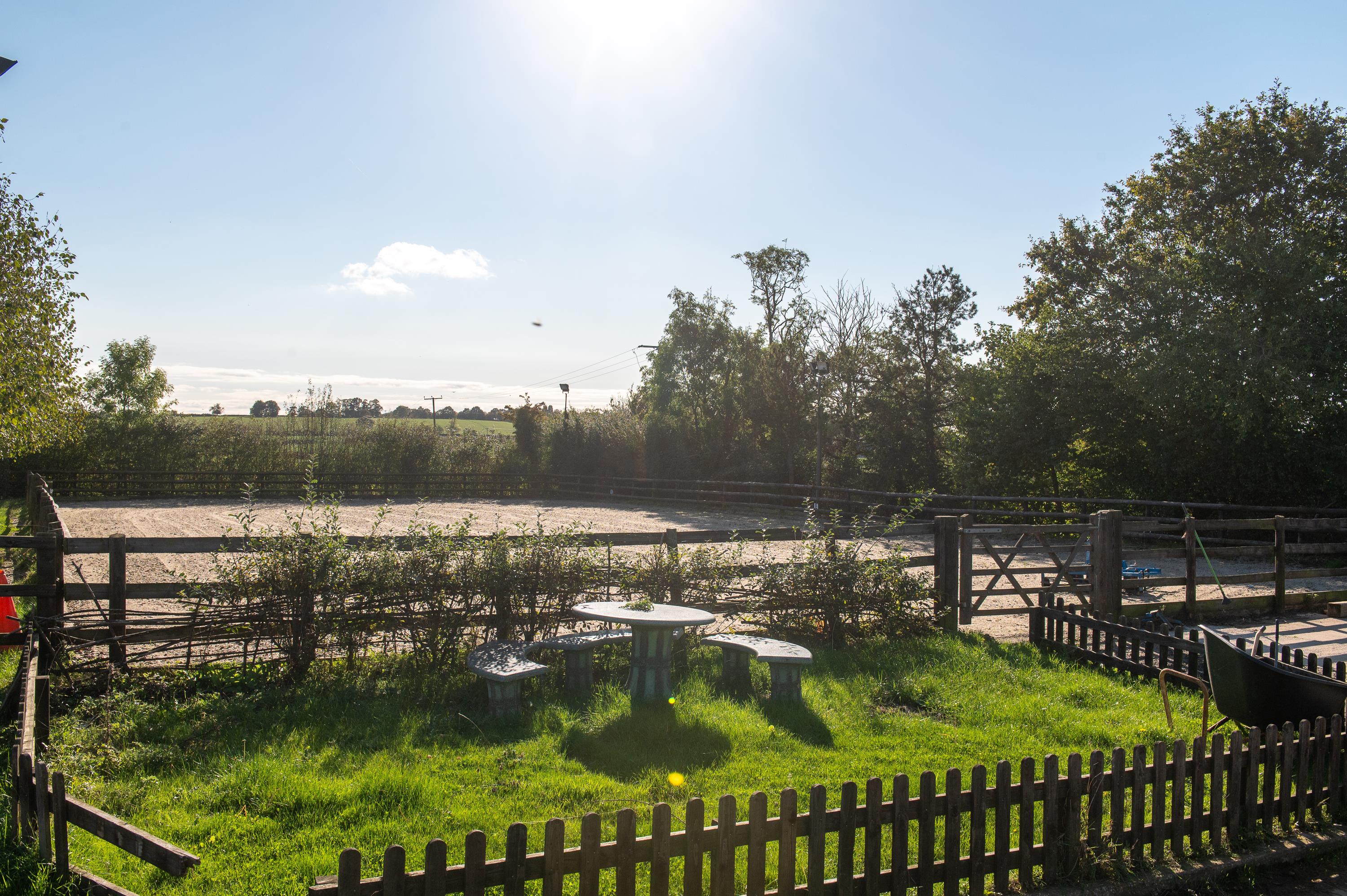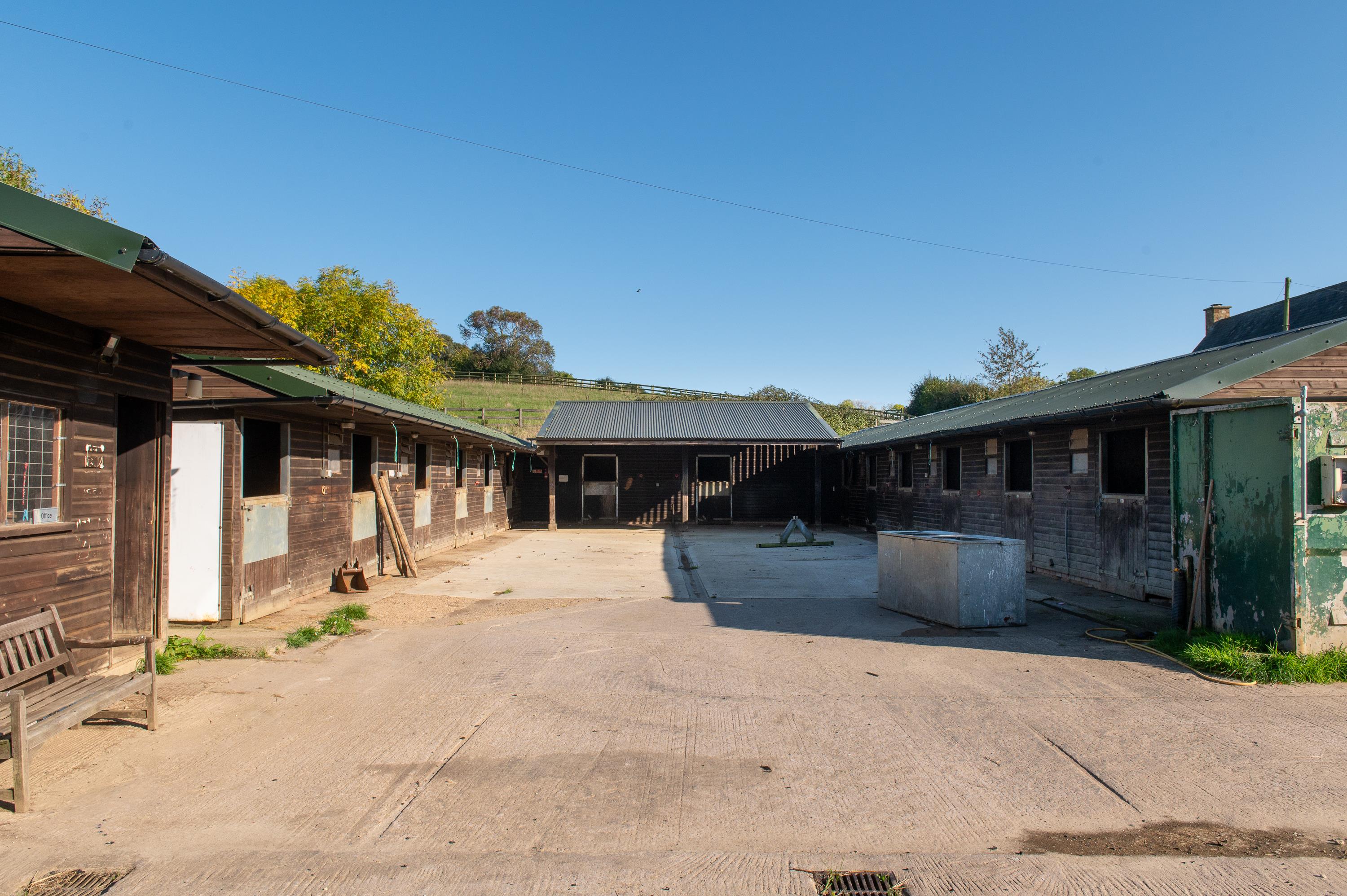 The stables have concrete yards, part covered, staff mess room and WC, yard office, tack rooms, fodder stores and extensive stabling and solarium. Horse walker in need of repair. Secure container storage All-weather lunge ring with lighting.