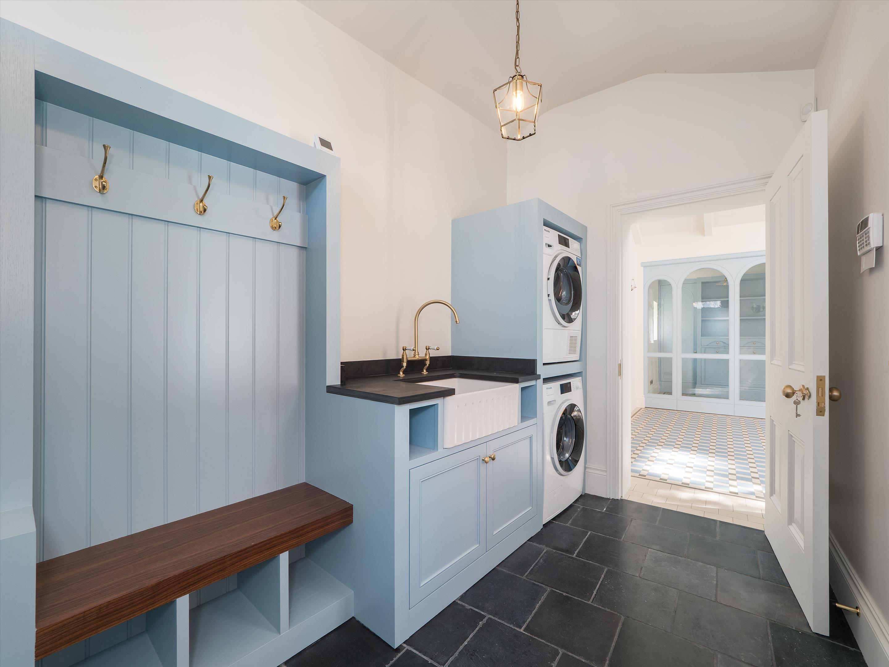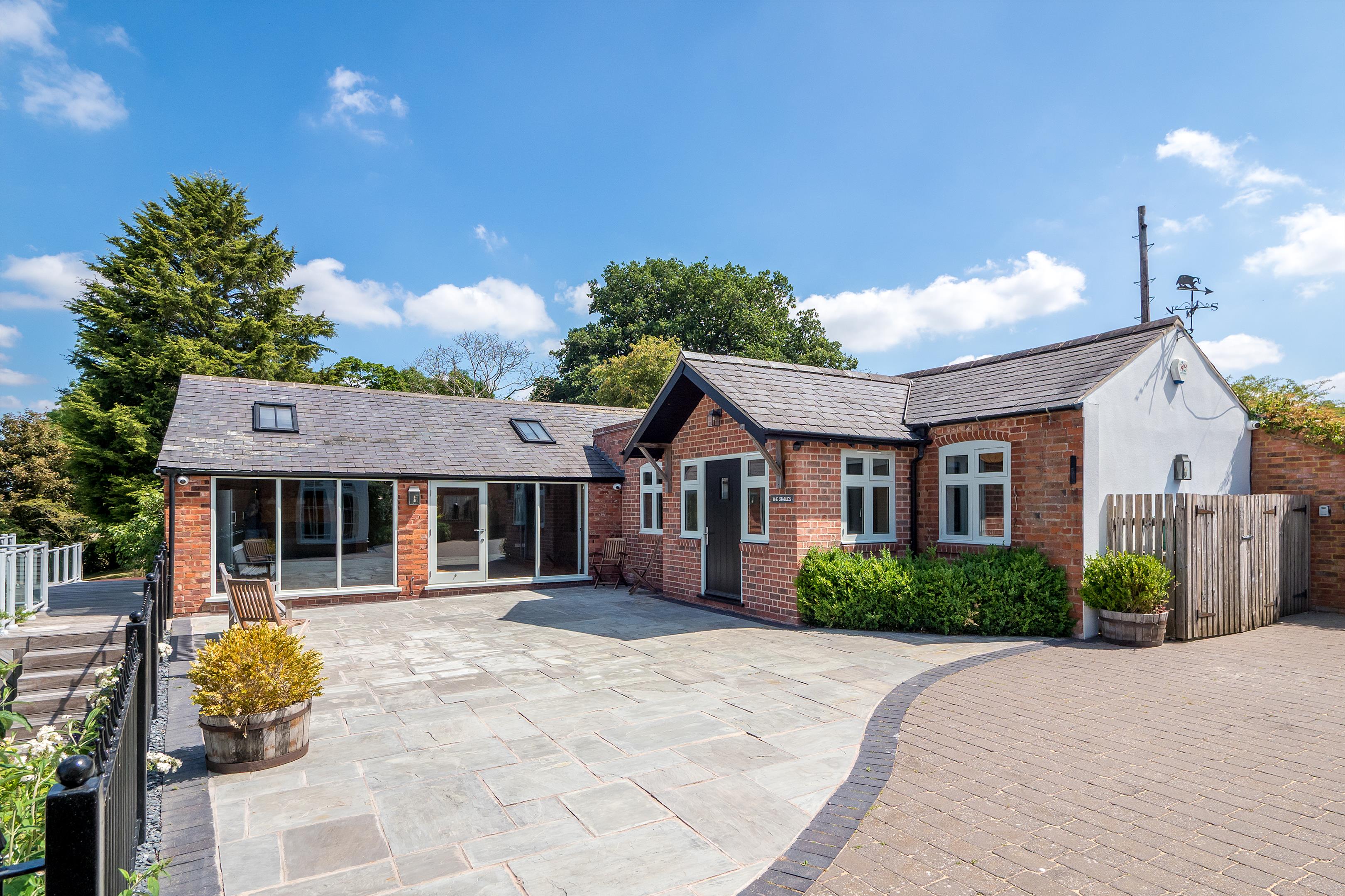 The impressive annexe, The Stables, includes a spacious open-plan entertainment and games room, featuring bifold doors that open onto the rear garden, with steps leading down to a stylish bar area. The Stables has two double bedrooms, a shower room, a utility room, and a cloakroom.