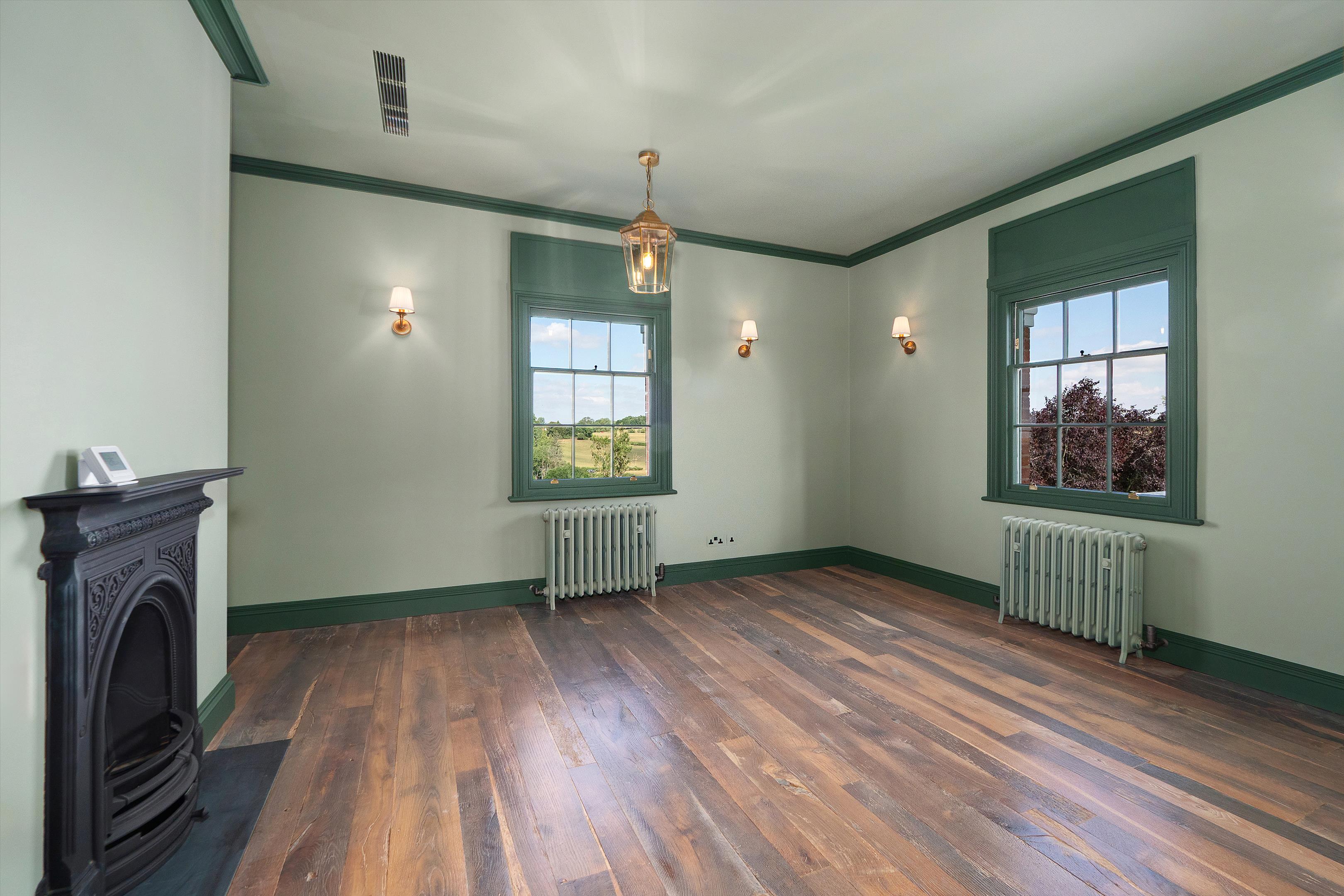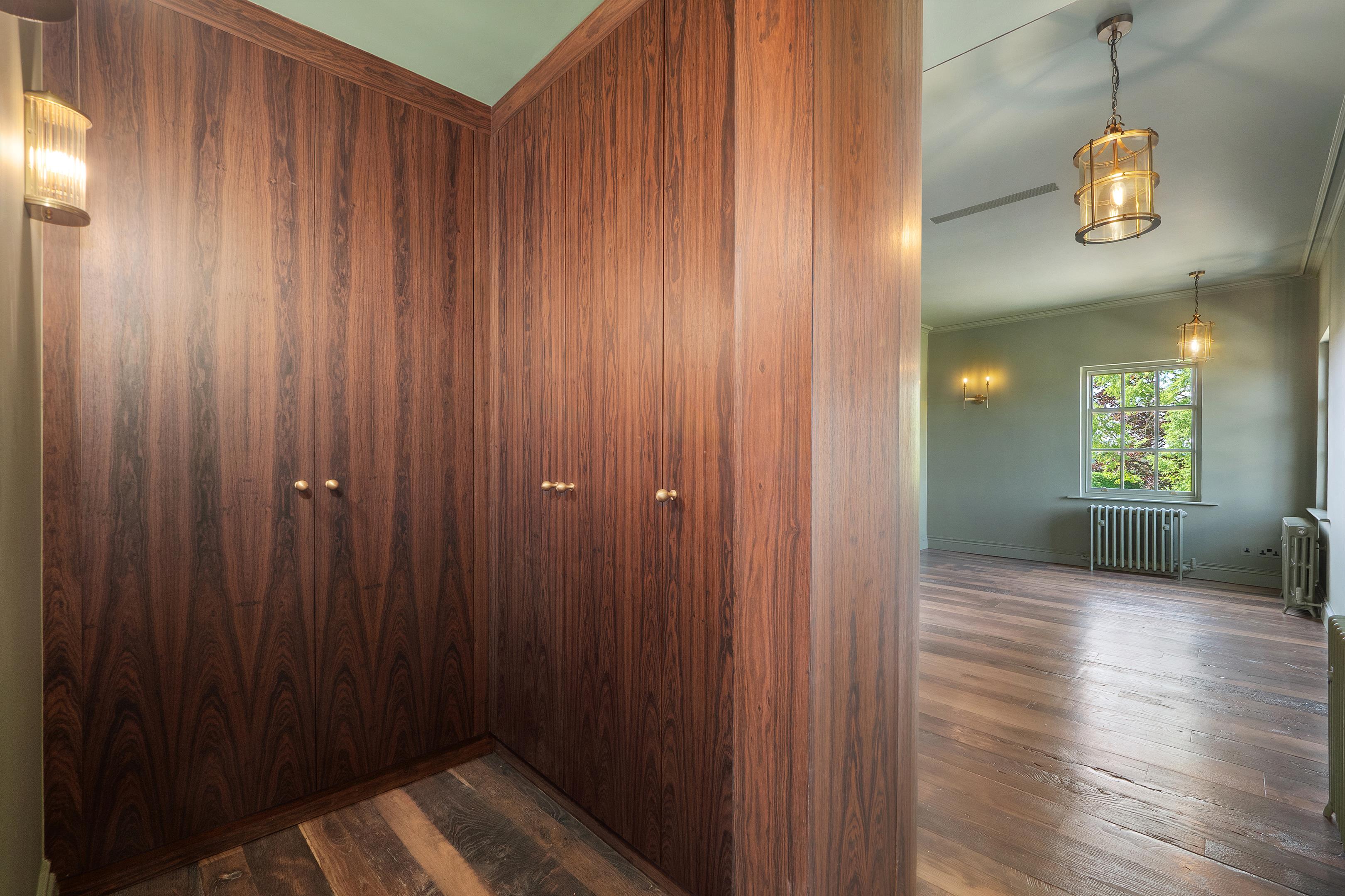 On the first floor, the principal bedroom suite features a luxurious bathroom and dressing room, accompanied by three further bedrooms and a well-appointed separate shower room.
